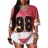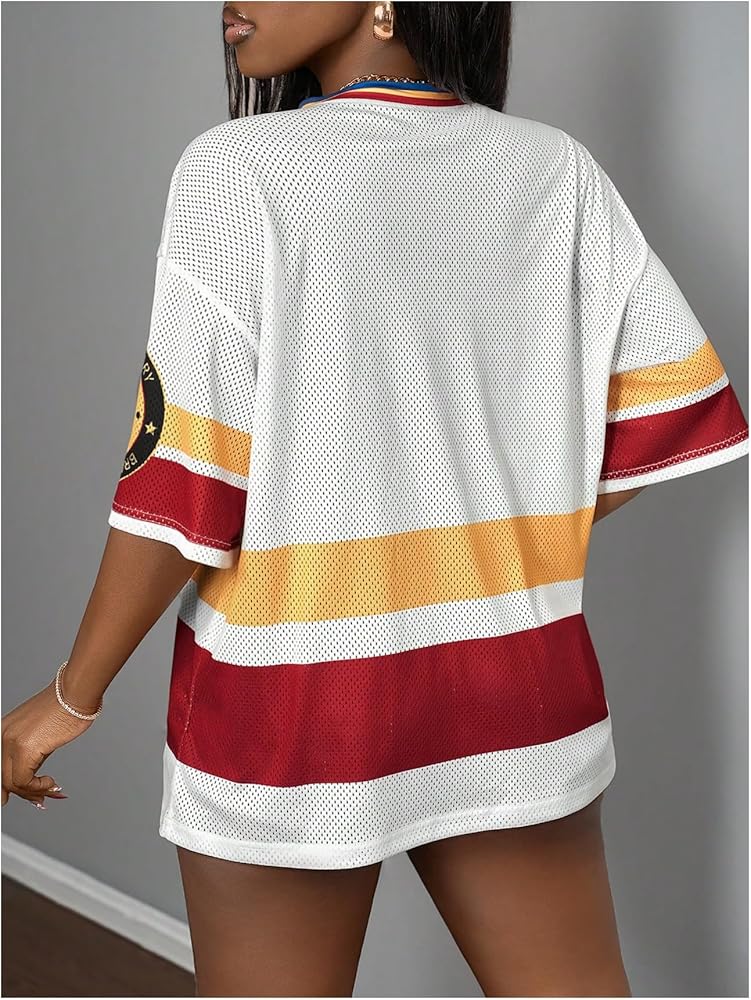 • Design: Striped print, color block, number print, half sleeve, v neck, drop shoulder, loose fit, womens t shirt