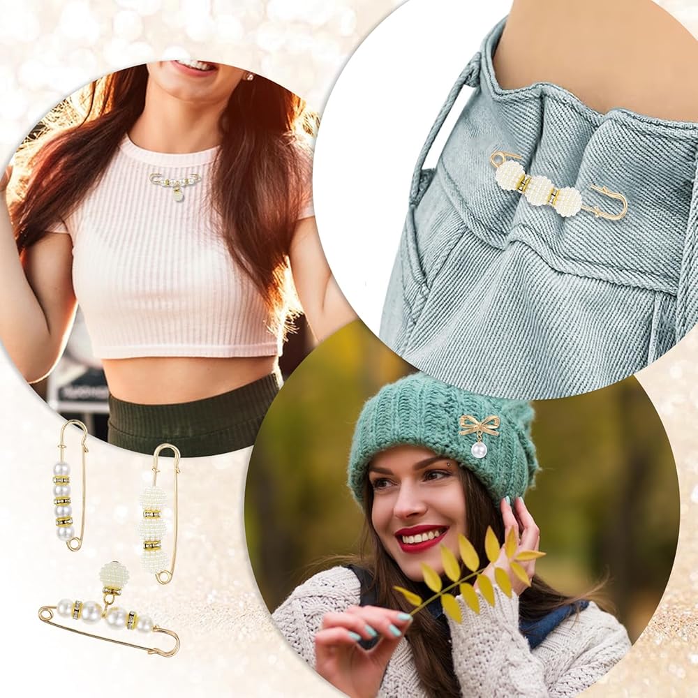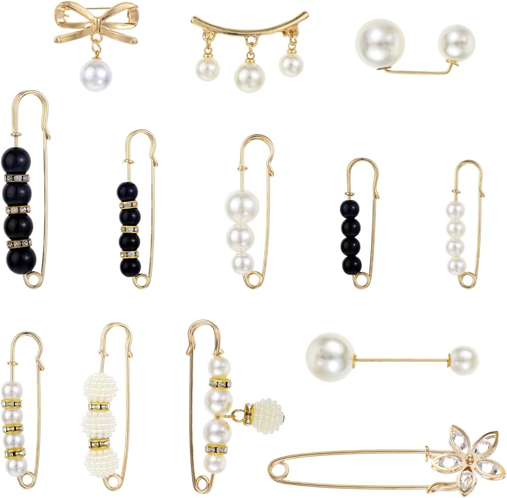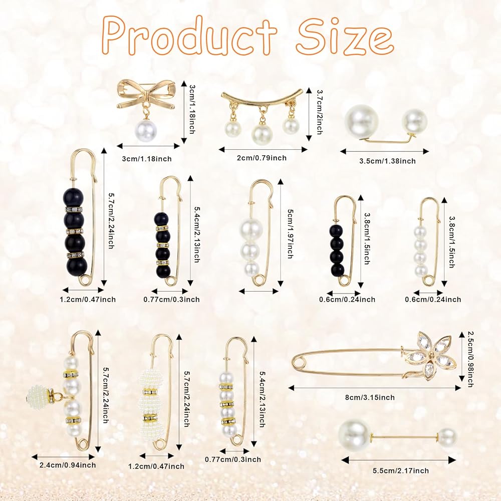 • 【Material】 These lovely pearl pins are made of solid alloy and are decorated with faux pearl or quality small rhinestones, safety pins for clothes for women, showing ladies' elegance and beauty. The brooch pins have gone through color preservation, which makes it not easy to fade