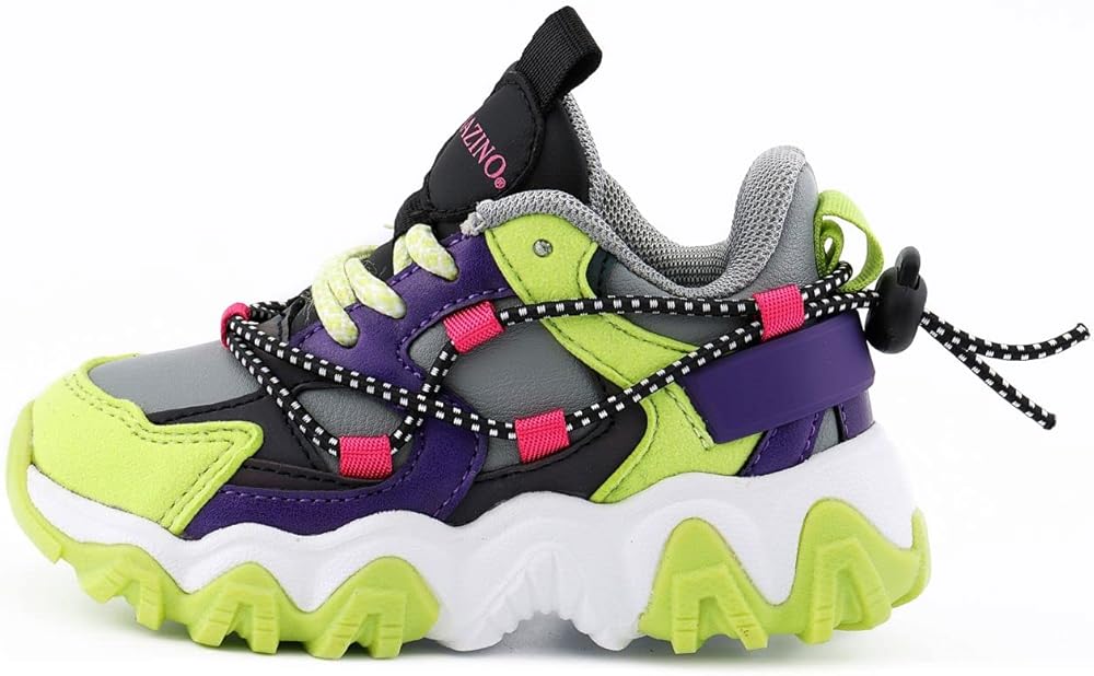 ميزات حذاء رياضة - شبكة قابلة للتنفس ، لهجات هندسية مع علامات جذب مزدوجة على اللسان والكعب