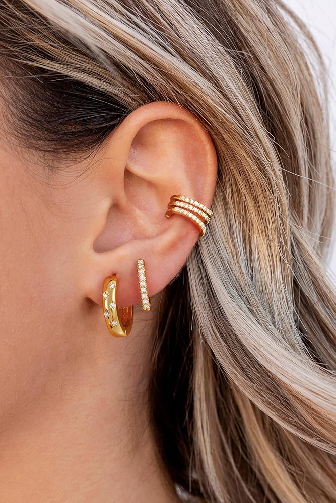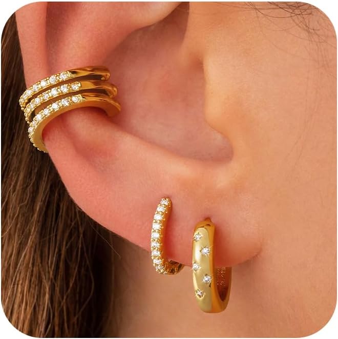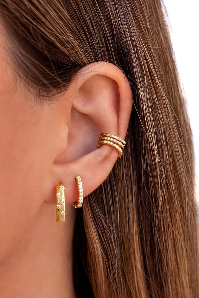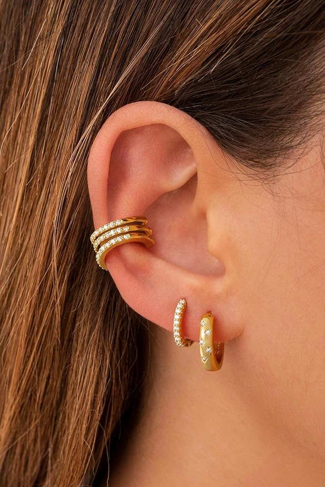 أقراط خفيفة الوزن: تم تصميم أقراطنا الصغيرة الذهبية لتكون مريحة وخفيفة الوزن ، حتى تتمكن من ارتدائها حتى أثناء النوم. الشكل الفريد للأقراط يجعلها عصرية ومناسبة للتكديس وكذلك ارتداءها بمفردها