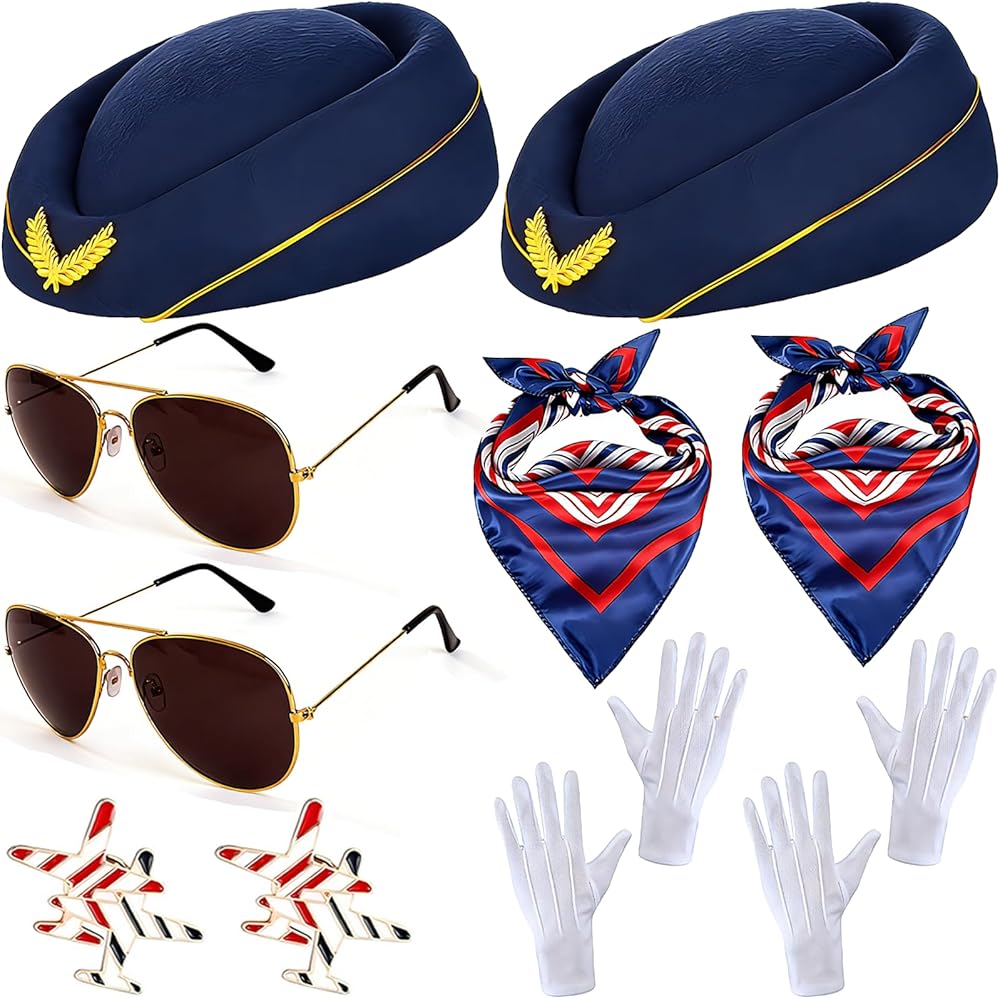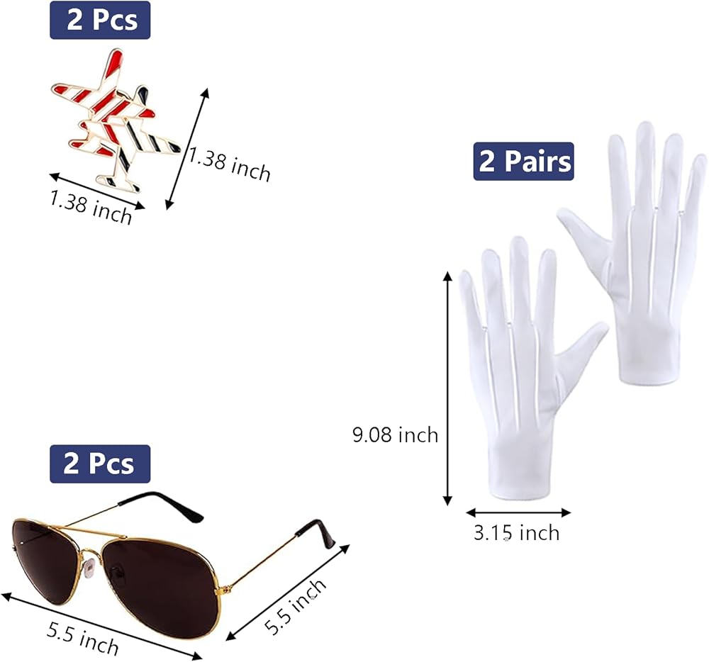 مجموعة أزياء مضيفات الطيران - ستتلقى 12 قطعة ، وتشمل هذه المجموعة 2 أجهزة كمبيوتر من قبعات الطيران الزرقاء الداكنة ، و 2 قطعة من الأوشحة المصاحبة للطيران ، و 2 من النظارات الشمسية ، وزوجين من قفازات الطيران البيضاء ، و 2 من دبابيس الطائرات. هناك مجموعتان في المجموع. يمكن أن يلبي تصميم الأزياء المصاحب عن الطيران متطلباتك لحضور مختلف الأطراف واللباس المضيفة.