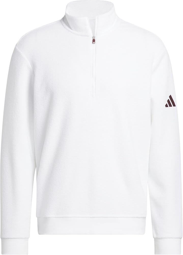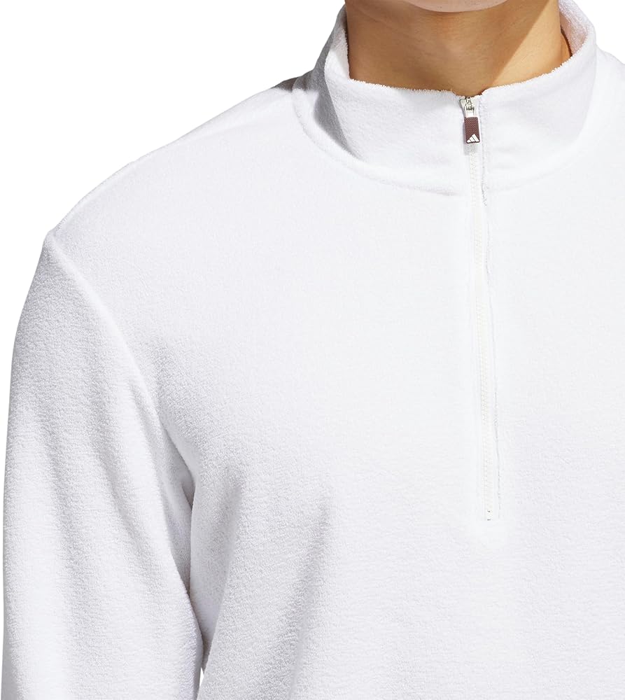 When the chill of the morning tee time sends others packing, you're just getting started in this adidas Ultimate365 Terry Cloth Quarter Zip Pullover. The soft touch double knit fabric offers a comfortable feel for early rounds and late-season games. The quarter-zip design lets you adjust your coverage as the temperature changes throughout the day. Made with recycled and renewable materials.