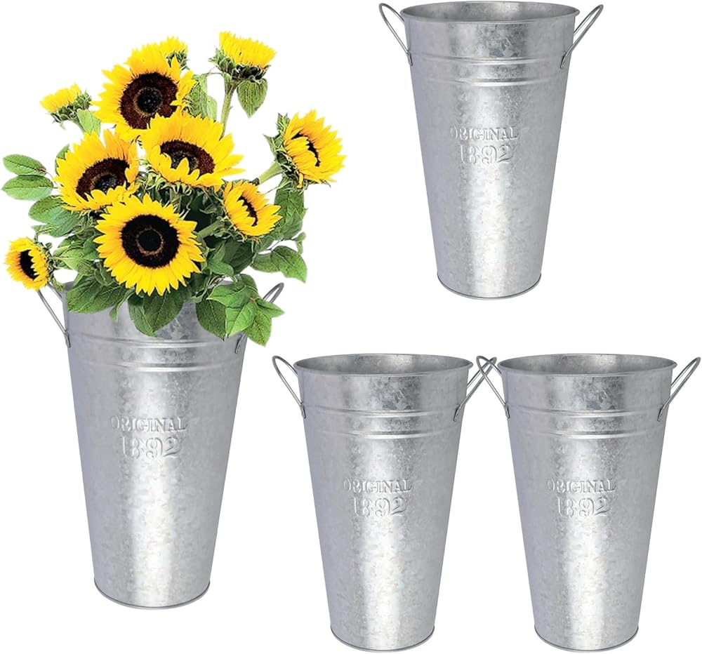 【المواد عالية الجودة:】 مصنوعة من الحديد المجلفن السميك مع صنعة ناعمة وعملية متعثرة ، فإن دلاء الزهور المجلفنة مغطاة بطبقة مقاومة للصدأ ، مما يضمن عدم كسرها أو تشوهها بسهولة ، مما يوفر متانة طويلة الأمد.