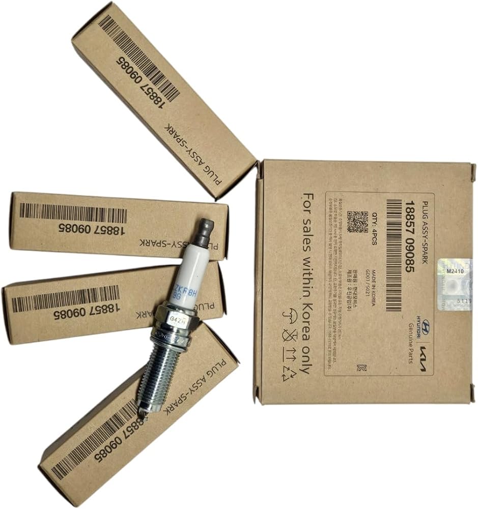 Genuine OEM 18857-09085 Spark Plugs, Set of 4, Compatible with Hyundai Santa Fe 2019-2020, Sonata 2018-2019, Kona 2022-2023, Elantra 2022-2024, Kia Optima 2019-2020