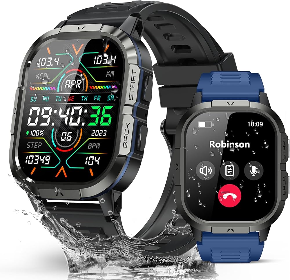 الساعات الذكية للرجال -2.06 "AMOLED (إجابة/إجراء مكالمات) ، IP68 Tracker Active Activity Step مع أوضاع Sleep Monitor/110+ ، ساعة ذكية تكتيكية لنظام Android IOS Samsung (Blue ، 2.06)