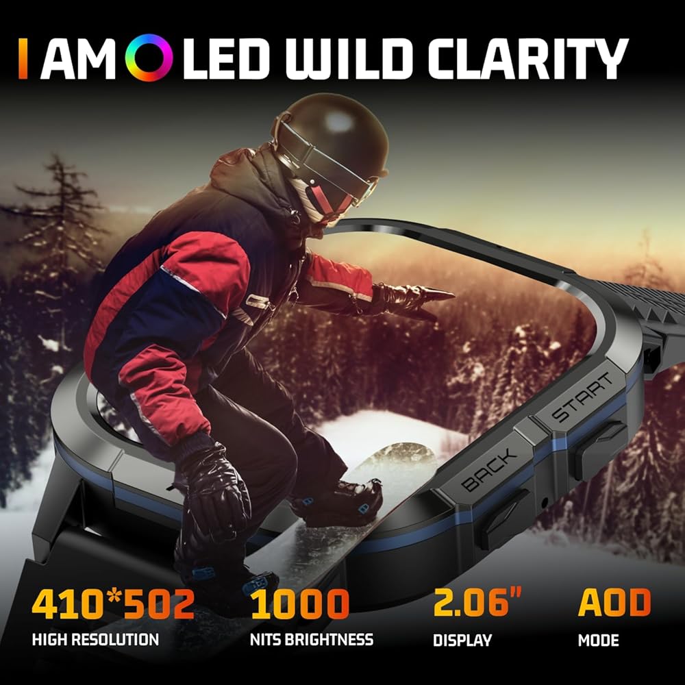 • الساعة الذكية العسكرية للرجال: تم بناء ساعة ذكية من الدرجة العسكرية للرجال من المعادن القوية وقد اجتازت اختبارات عسكرية صارمة لدرجات الحرارة القصوى والضغط المنخفض ومقاومة الغبار. تتوافق الساعة الذكية لـ Android iPhone وتتميز بشاشة AMOLED كبيرة البالغة 2.06 بوصة بدقة 410 × 502 ، مما يوفر تجربة لمسة ممتعة وصور مثيرة للإعجاب.