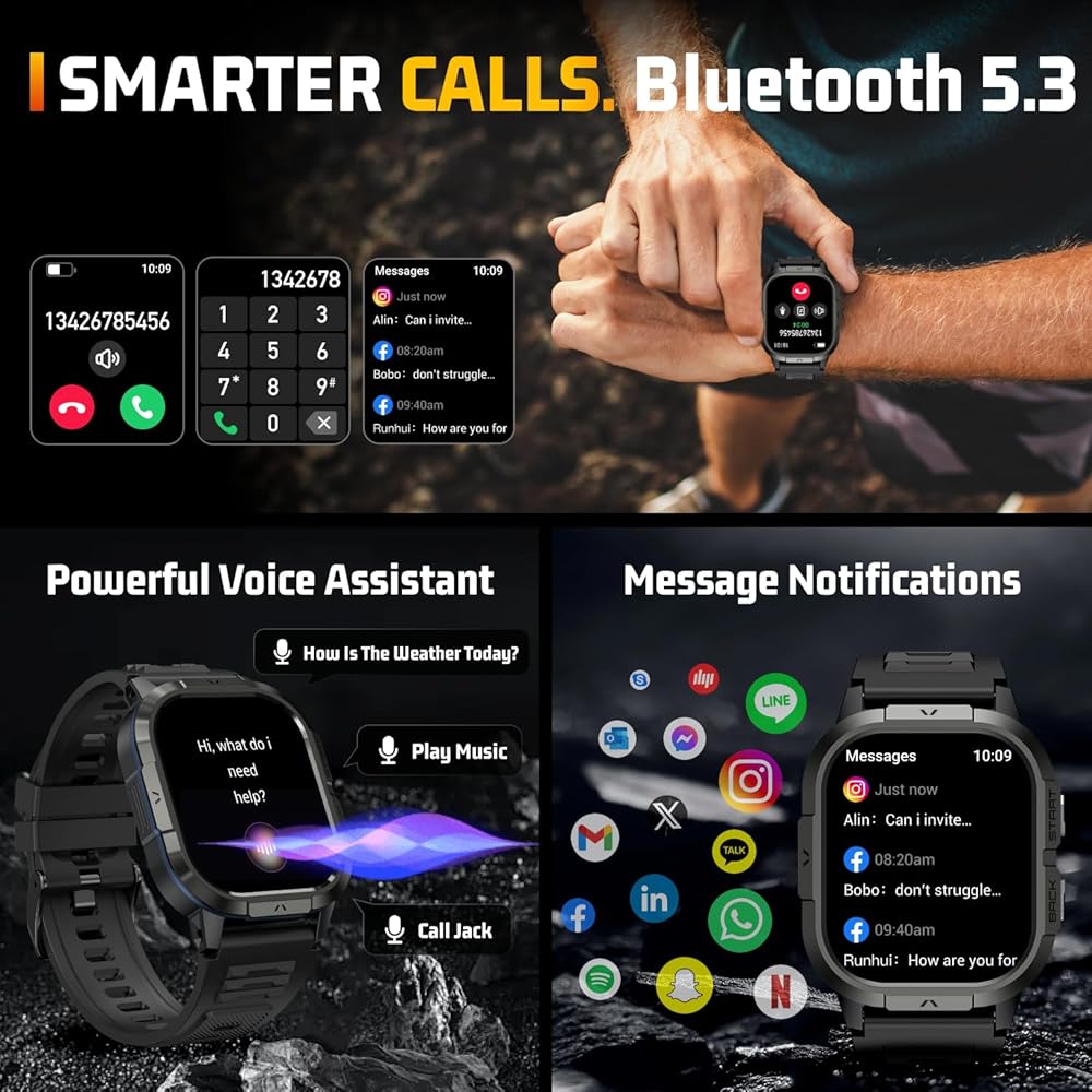 • ساعة Bluetooth Smart Watch مع مكبر صوت عالي الجودة: تتميز Watch iPhone & Android Smart Watch For Men بمكبر صوت عالي الجودة ومكالمات بلوتوث ، مما يتيح لك الإجابة/ إجراء المكالمات. استمتع بإخطارات سلسة للرسائل القصيرة والمكالمات والتطبيقات مثل WhatsApp و Facebook. تشغيل الموسيقى ، واتصالات المتجر ، ووظائف مساعد الصوت للراحة الإضافية - في المقدمة للرياضة أو القيادة أو الأيام المزدحمة.