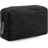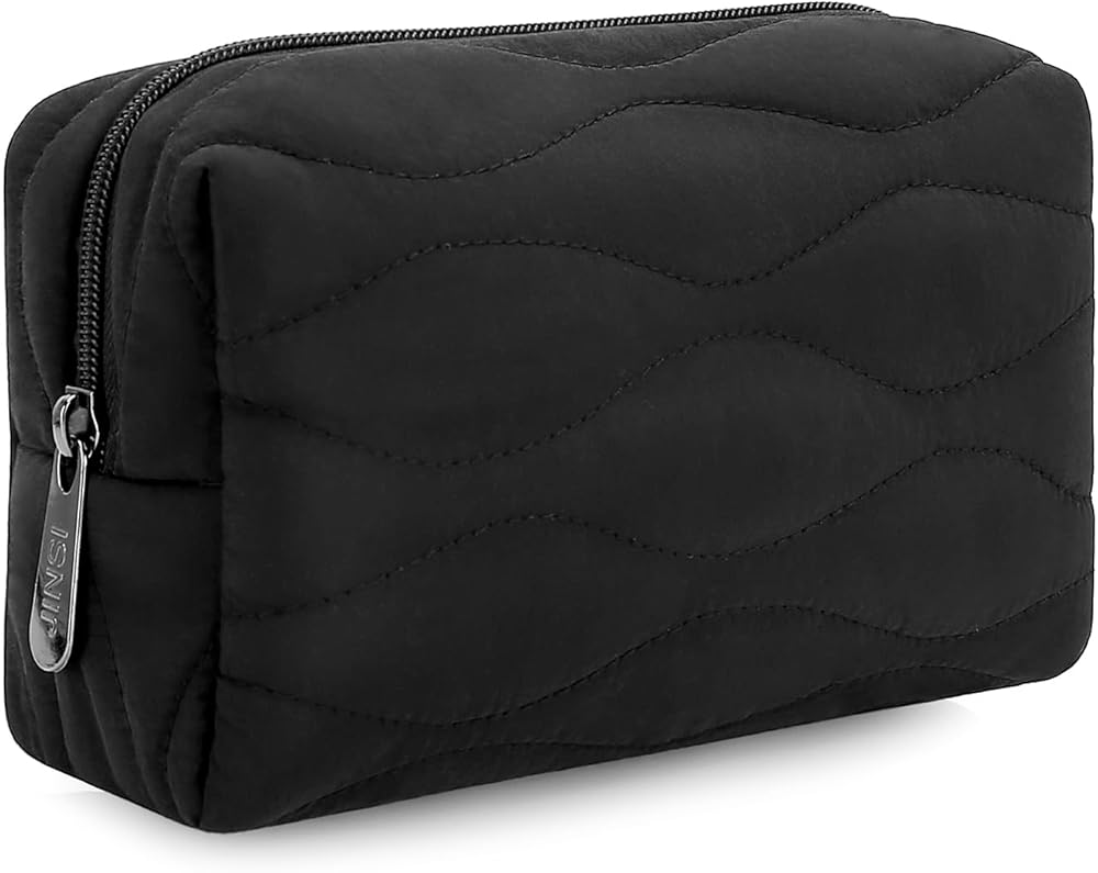 Small Travel Makeup Bag for Women, Mini Puffer Cosmetic Bag, Zipper Organizer Toiletry Bag, Water-resistant Make Up Pouch, Travel Essentials Toiletries Accessories (Black)