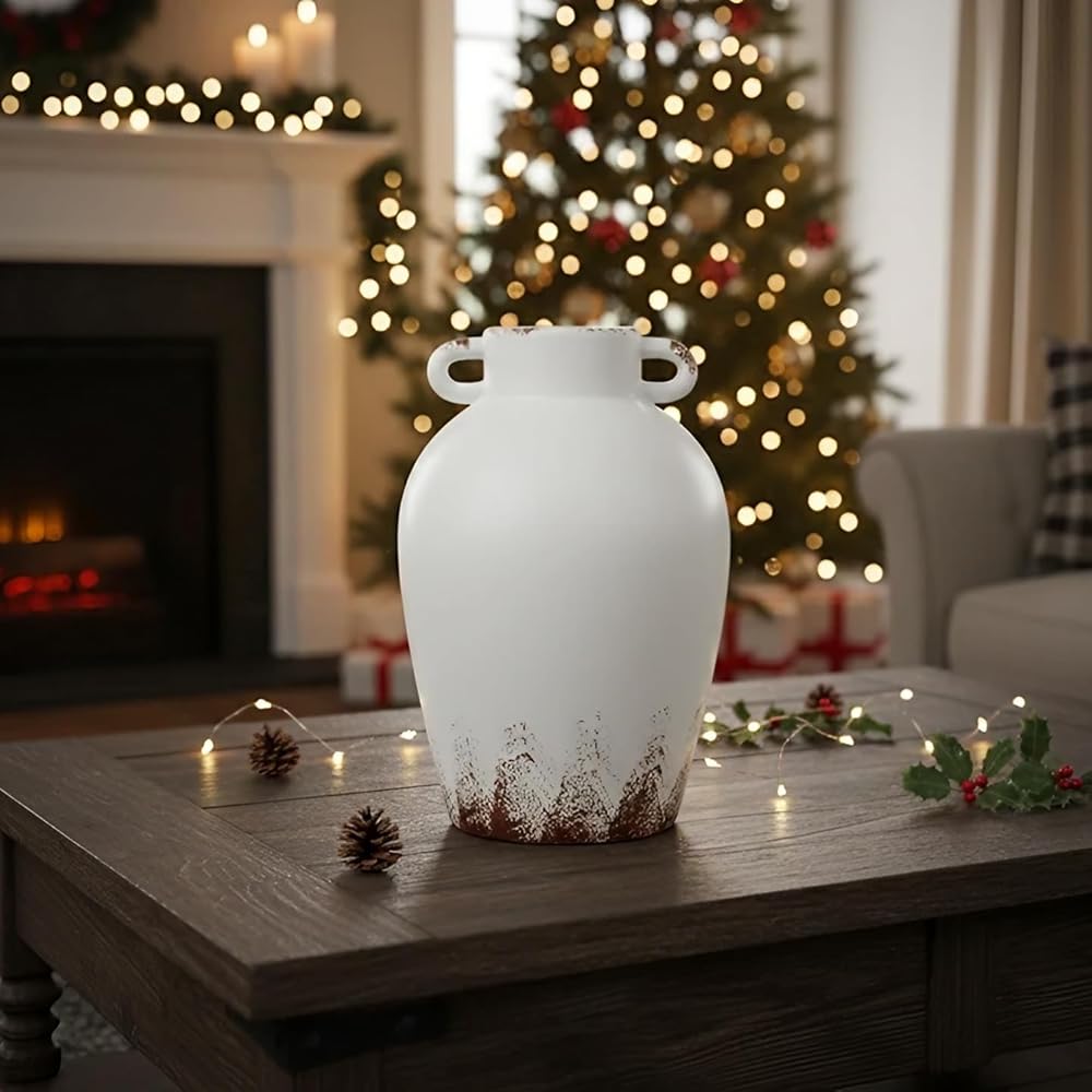 ديكور متعدد الاستخدامات لكل مساحة وموسم: أنماط مرسومة باليد حول الحافة والقاعدة تتنفس سحر عتيق في هذه المزهرية. الانتقال بسلاسة من زنبق الربيع إلى الشتاء الأوكالبتوس. يكمل الملمس الأبيض غير اللامع لهجات الطين ، وصواني بوهو ، والأرفف البسيطة-مما يجعلها مرساة للملابس الموسمية والديكور دائمة الخضرة.