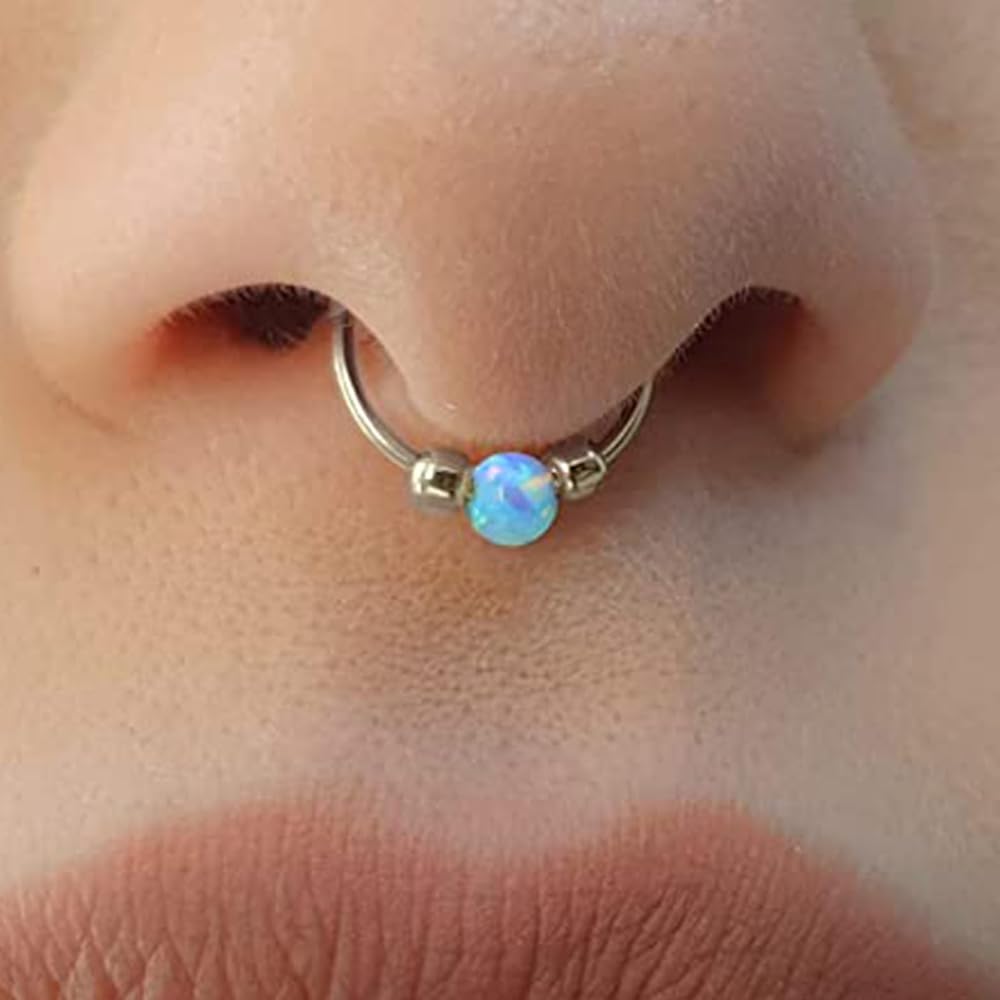 - [ميزة]: مجوهرات حقيقية مثقبة للسيدات للنساء ، أوبال أنف هوب ، أوبال غضروف الأقراط