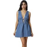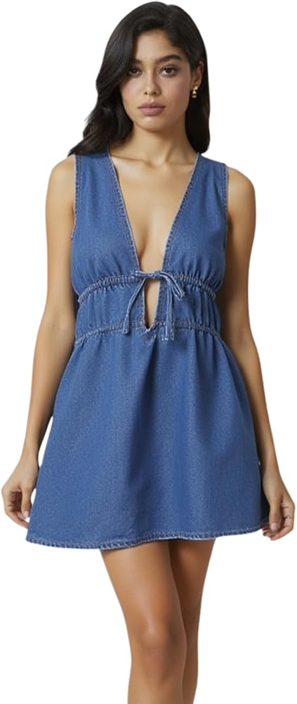 ربطة عنق النساء الدنيم المصغر فستان عميق الخامس عن الرقبة بلا أكمام