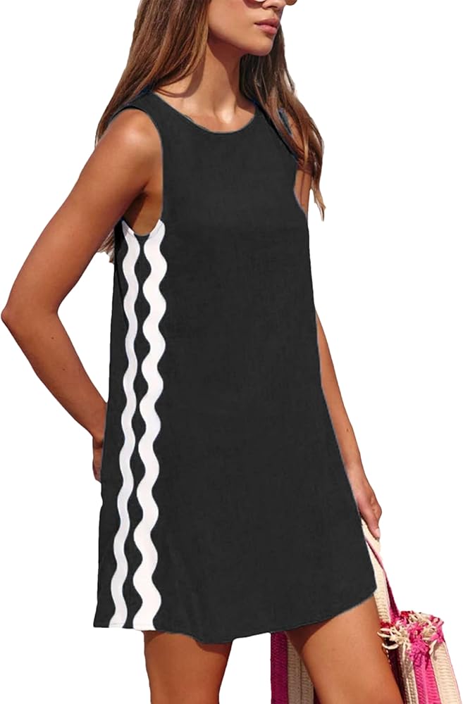 الميزات: تصميم الفساتين كلاسيكية تمامًا ، ويتميز بأسلوب مستدير وأسلوب بلا أكمام. يضيف النمط المتموج على جانب الفستان لمسة من التفرد ، مما يجعلها مثالية لأيام الصيف الحارة