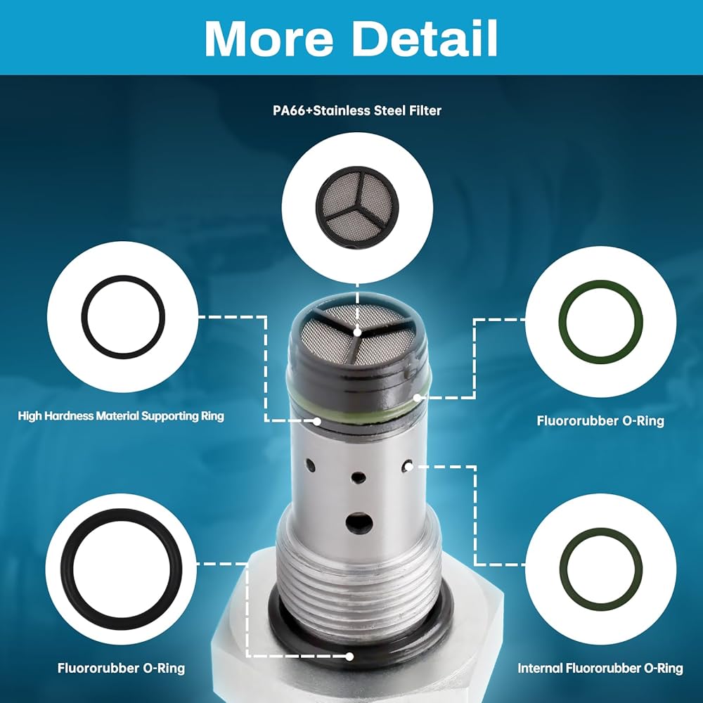 الوظيفة: يتحكم في الوقود عالي الضغط المطلوب لحاقن الوقود للعمل-ينظم صمام حقوق الملكية الحكومية (منظم حقن) ضغط الزيت في نظام الوقود عالي الضغط لضمان حقن الوقود الدقيق. يمكن أن يتسبب الصمام المعيب في بدء التشغيل الصعبة والمماطلة والقيادة الخاملة ، وسوف يعيد المحرك إلى الأداء العادي.