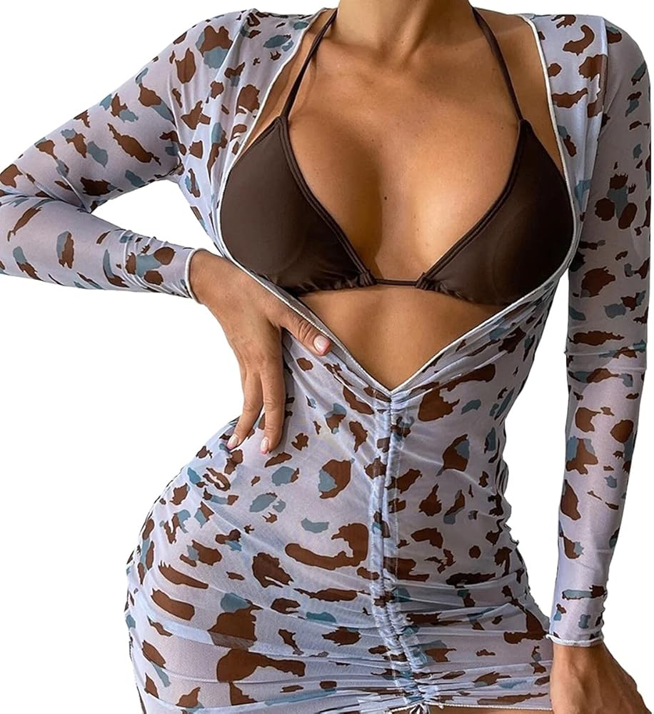 • السمات: تتكون بدلة السباحة المكونة من ثلاث قطع من طقم بيكيني مثلث مثير + غطاء فستان مطوي برباط بأكمام طويلة مع طباعة صيفية خاصة، ألوان رائعة تكمل التصميم الأنيق.