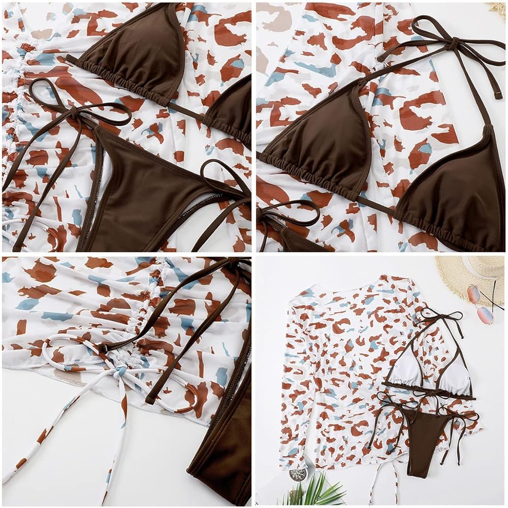 Nhicdns ملابس سباحة نسائية مكونة من 3 قطع مطبوع عليها زهور مثيرة مثلثة هالتر بيكيني مجموعة ملابس سباحة لتغطية الفستان