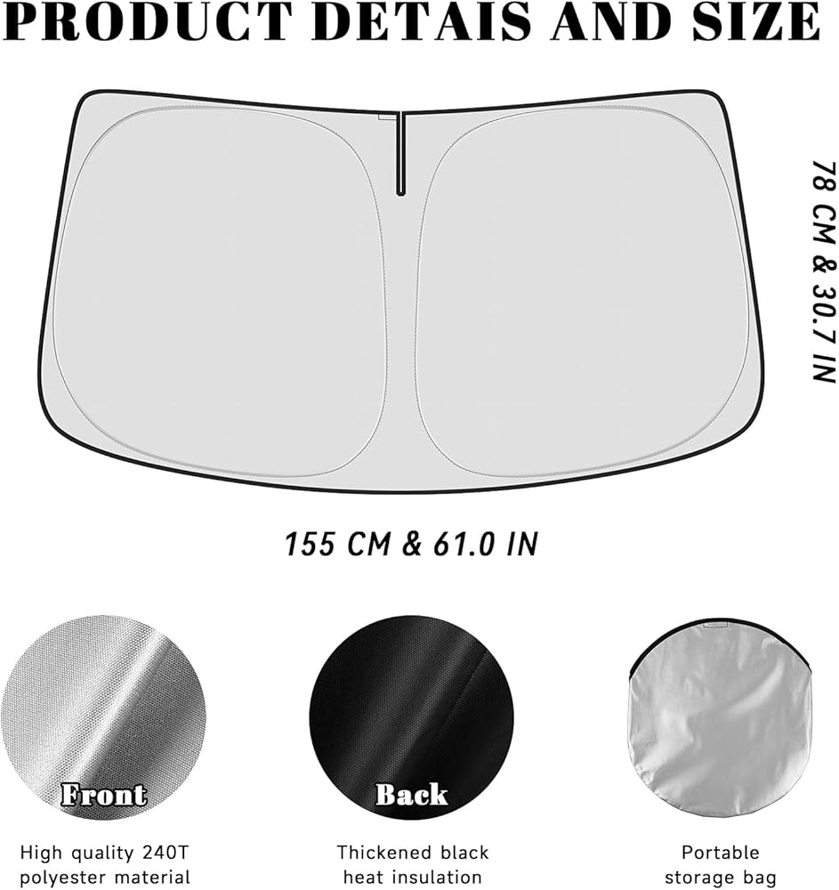 مصنوع من البوليستر العاكس عالية الجودة 240T ، يمنع هذا الزجاج الأمامي Sunshade بكفاءة على كلاً من الحرارة وأشعة الشمس ، مما يساعد على الحفاظ على داخل سيارتك باردة. يعزز إطار ذاكرة سبيكة الألومنيوم المطورة المرونة ، مما يجعل من السهل الاستقرار في الزجاج الأمامي مع تسهيل طي بسيطة وتراجع.