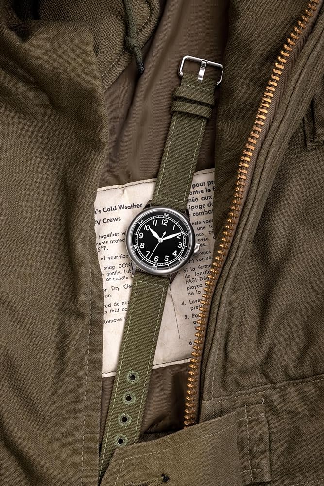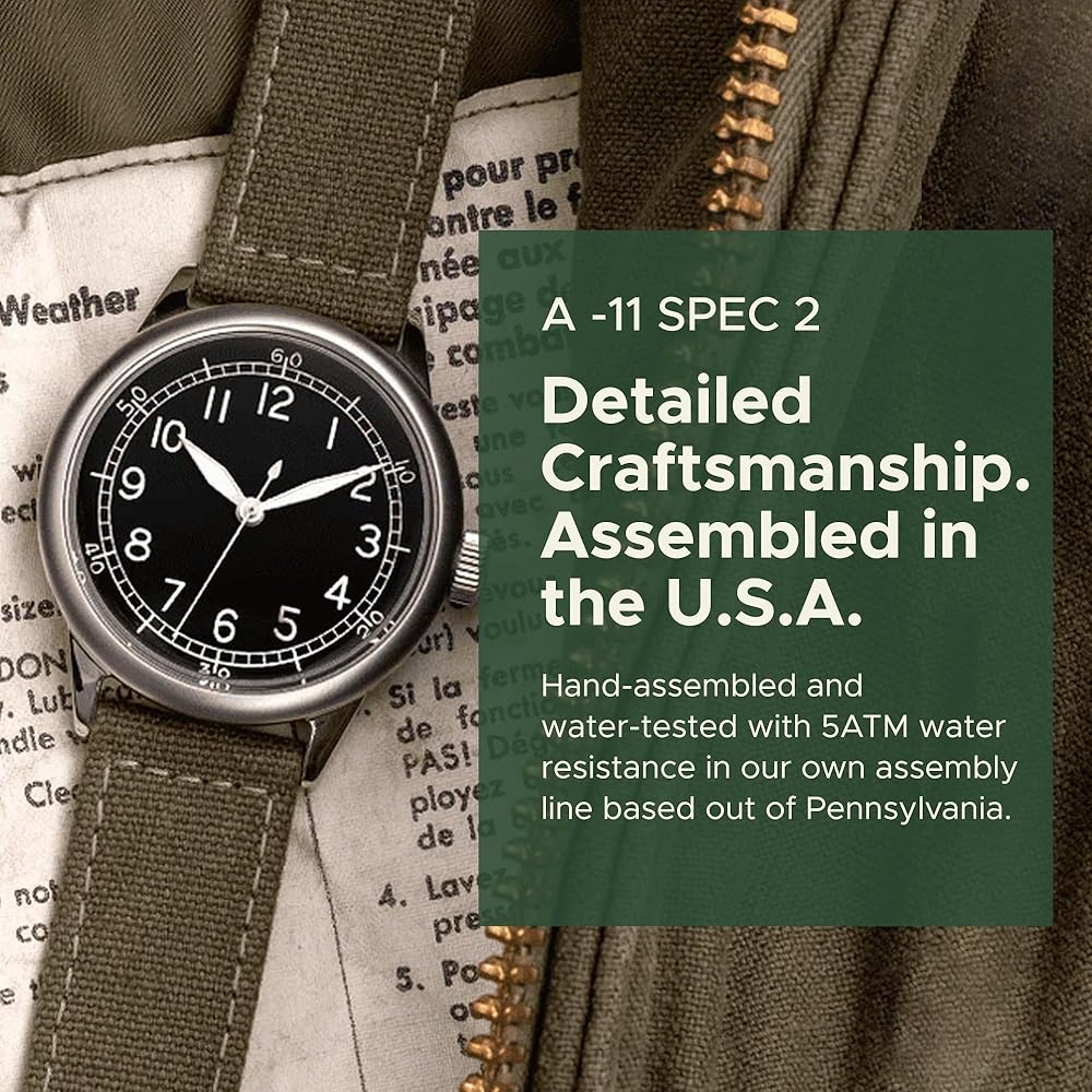 ساعة عسكرية تم تجميعها في الولايات المتحدة الأمريكية: إعادة إصدار حقيقية لساعة A-11 مصنوعة بدقة على يد خبراء الساعات، وتم اختبارها بالمياه وتجميعها في بنسلفانيا