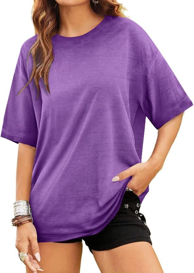- القميص الضخم للنساء اللواتي يضمن رقبة الطاقم ، والطائرات المغسولة ، والقمصان الأساسية ، والقمصان الضخمة وقميصًا فضفاضًا للنساء والفتيات في سن المراهقة