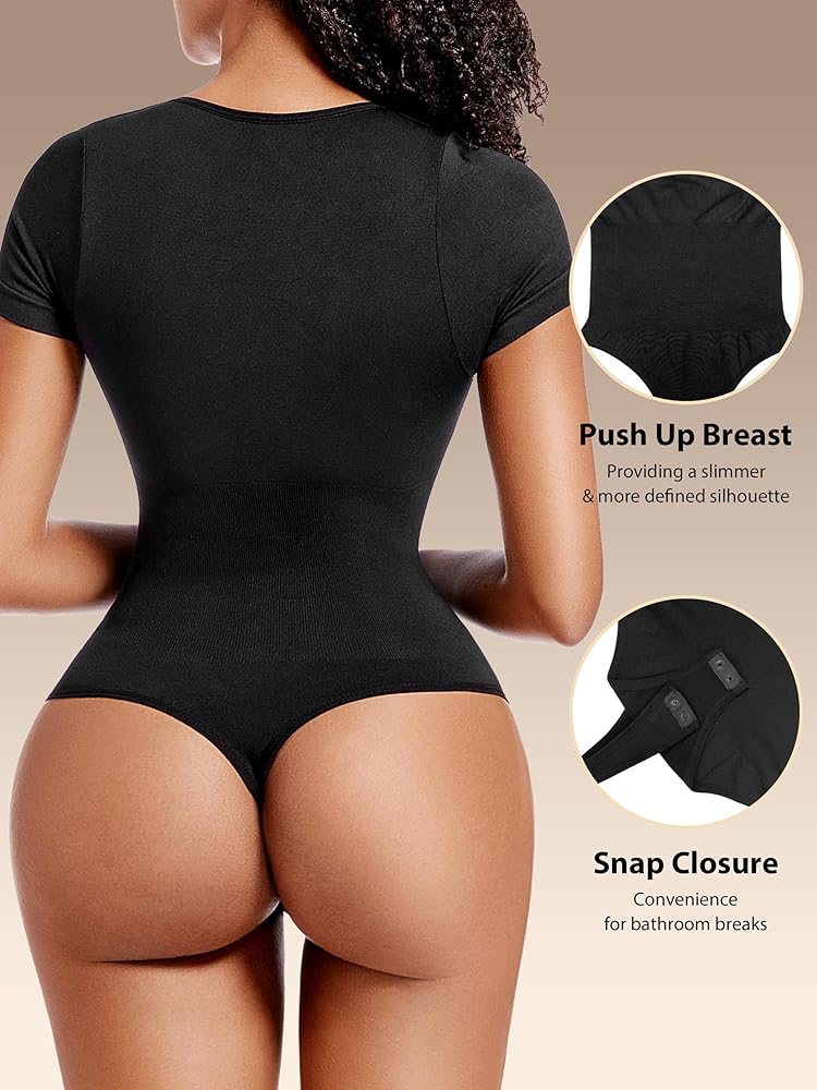 بدلة الجسم ثونغ مع زر كبس: إغلاق مزدوج عند منطقة ما بين الرجلين يجعل من السهل ارتداء وخلع ملابس التنحيف المثيرة هذه.