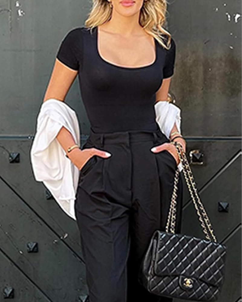 تيشيرتات برقبة مربعة وقمصان داخلية: تتميز بدلة الجسم هذه ذات الأكمام القصيرة برقبة مربعة أنيقة، وتُظهر عظمة الترقوة الساحرة وتوفر مظهرًا جذابًا وعصريًا يكمل أي ملابس بشكل مثالي. لا يوجد تصميم حمالة صدر مضغوطة.