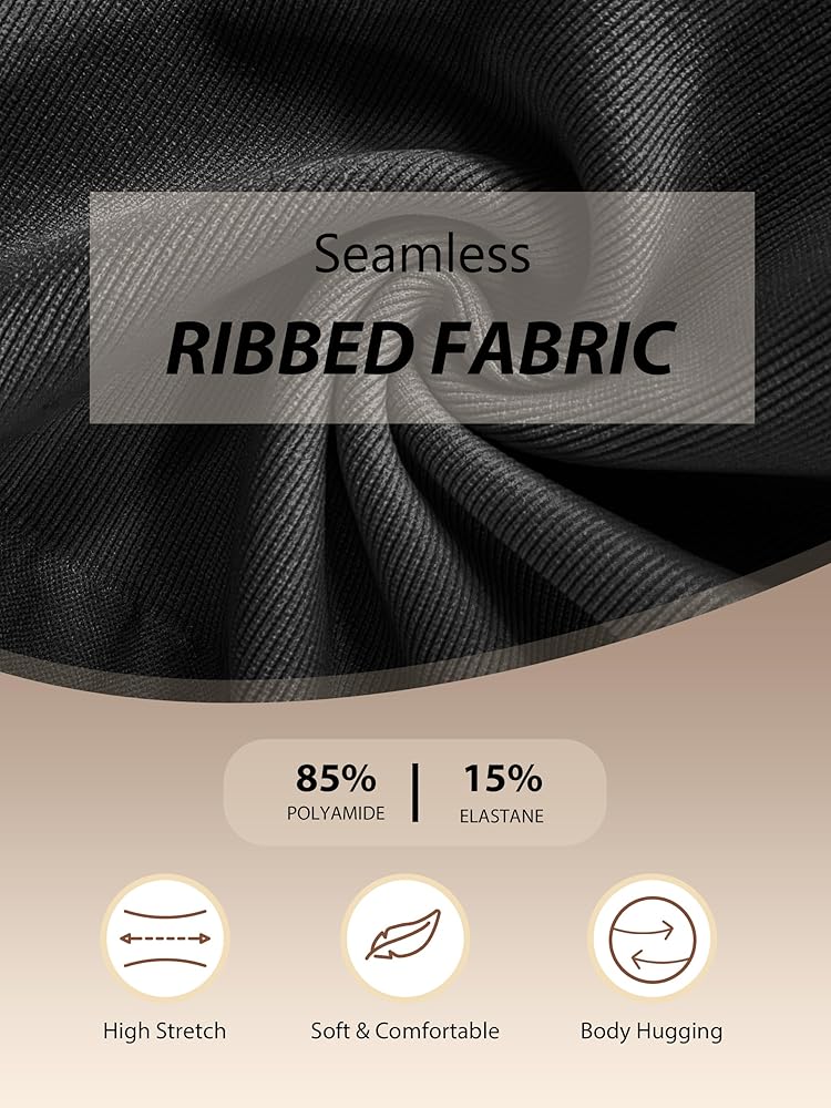 نسيج مريح وغير شفاف: استمتع بالراحة القصوى مع بدلة الجسم الناعمة والمسامية بدون خياطة. القماش المضلع صديق للبشرة، مع مرونة جيدة وسمك يضمن الشفافية.