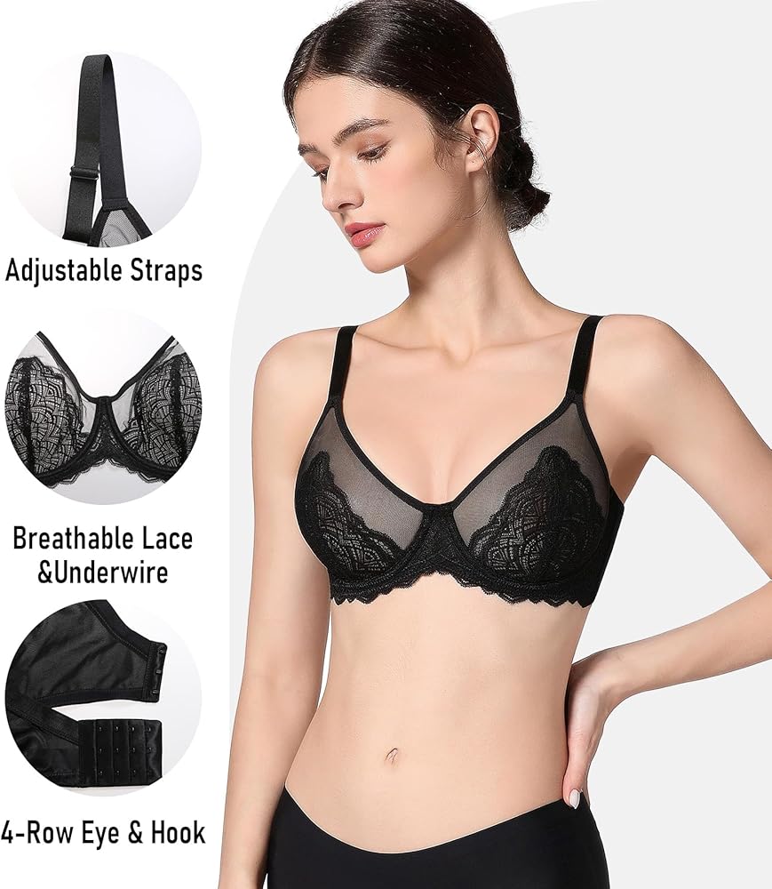تصميم الراحة الرائعة: أكواب الدانتيل غير المبطنة المصنوعة من نسيج ناعم للتنفس لراحة إضافية ، كما يضيف تصميم الدانتيل العصري مثيرًا ومرحًا ، وهو مثالي للارتداء طوال اليوم.