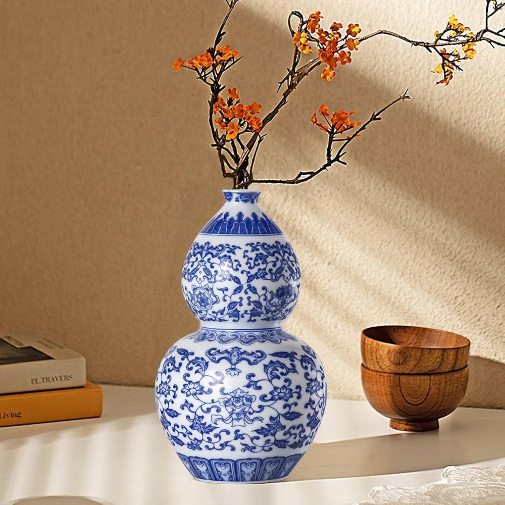 • Elegant Blue and White Chinese Vase: This classic blue and white China flower vase features intricate lotus patterns, making it an eye-catching choice for centerpieces, fireplace decor, or any room that needs a touch of sophistication.