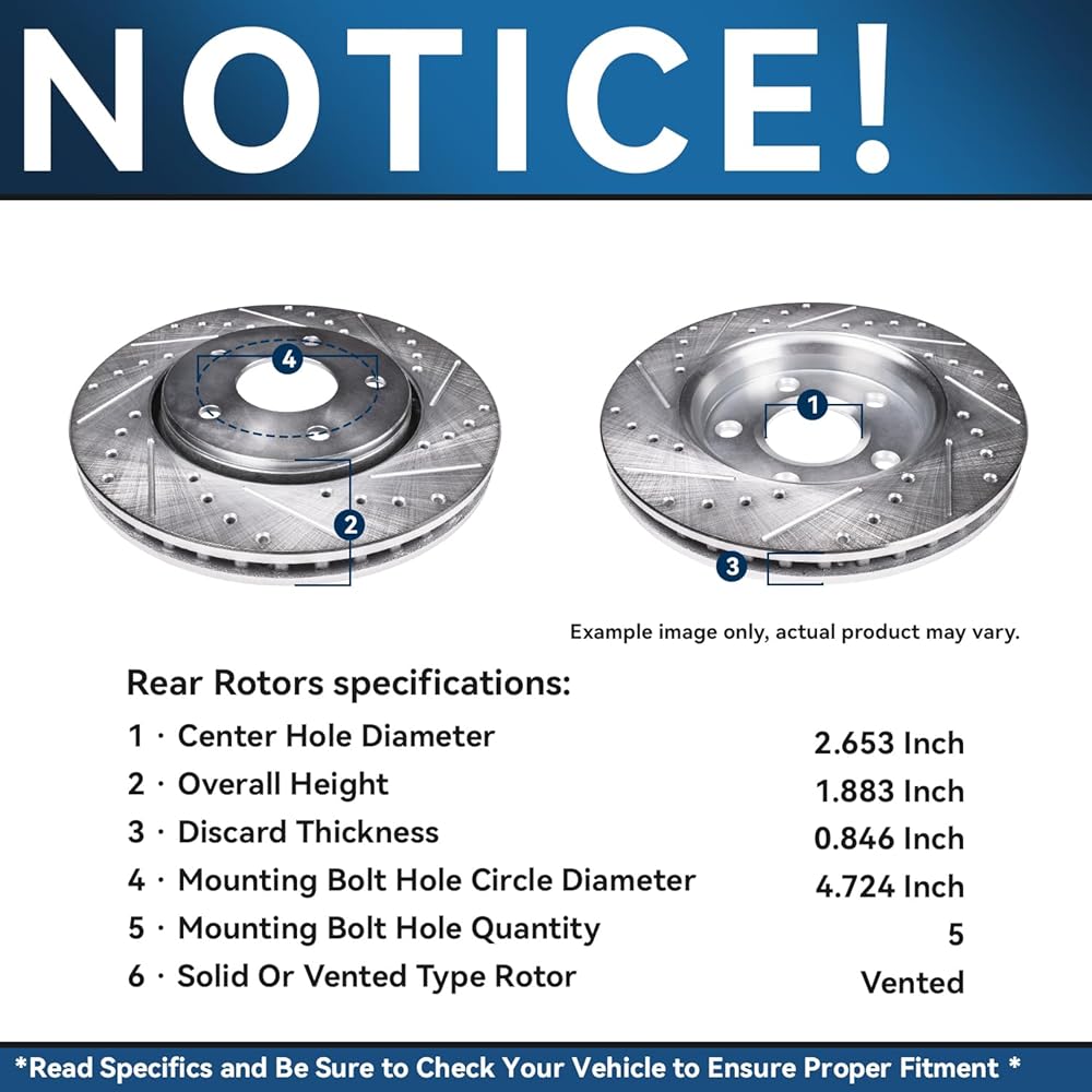 محور ديترويت - 12.40 بوصة مجموعة الفرامل الخلفية لشيفروليه إمبالا ماليبو محدودة بويك جاذبية لاكروس ريجال كاديلاك XTs ، حفر دوارات الفرامل المتنافسة على قرص محفور.