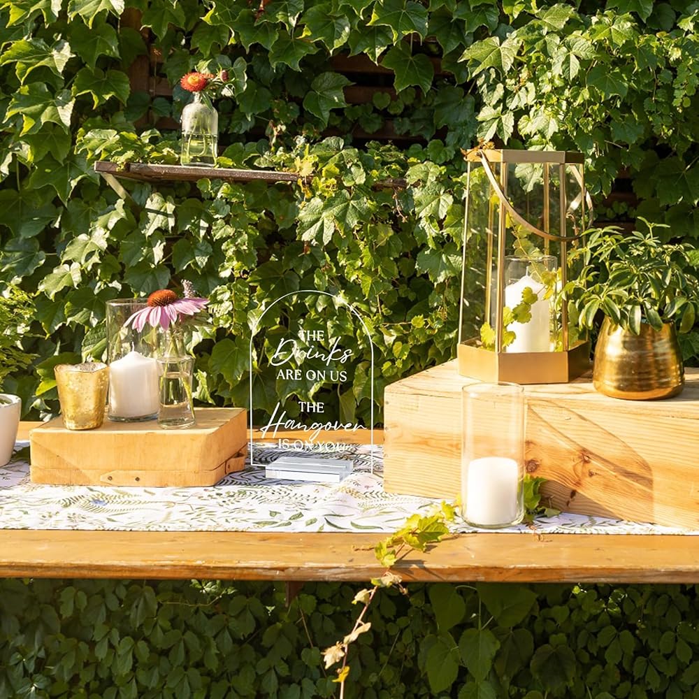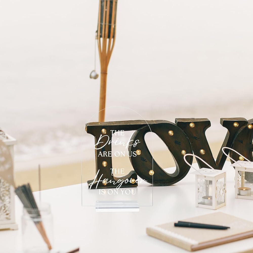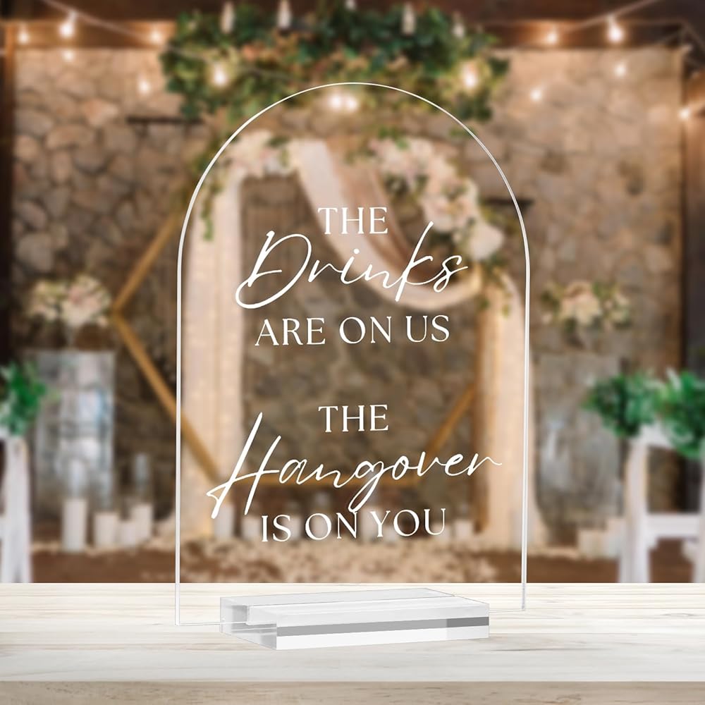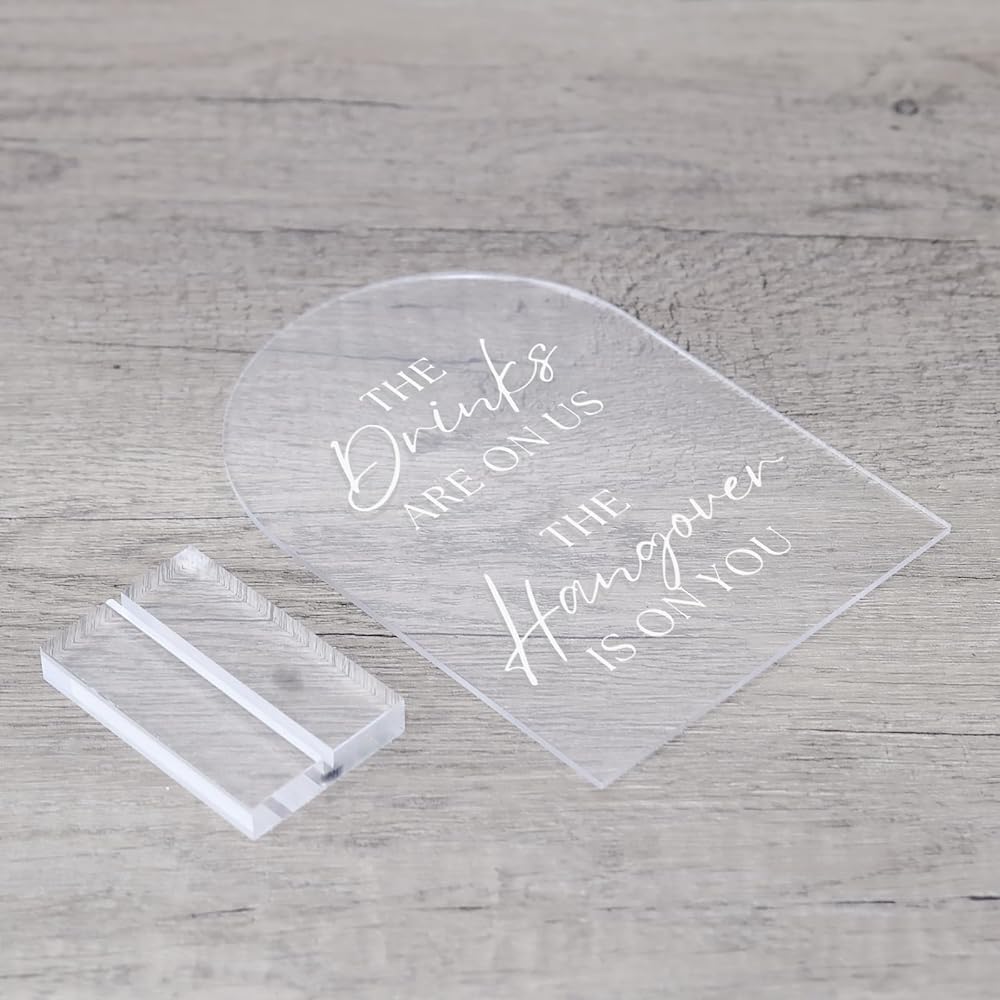 Design: Gorgeous calligraphy cursive font on acrylic acrylic signs, we love the clean lines of these arch acrylic wedding signs! This sign will be the perfect addition to any rustic, vintage, country, garden or woodland-themed wedding