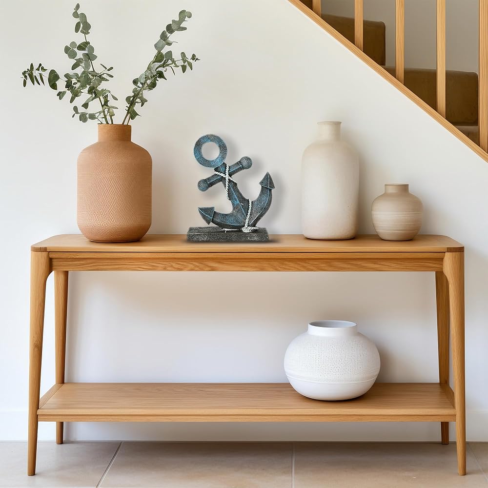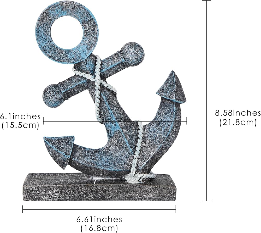 Bring the charm of the sea into your home or office with our Nautical Anchor Decor Statue. This rustic anchor figurine, complete with rope detail, adds a touch of nautical elegance to your space. Crafted from resin and hand-painted, this anchor statue is designed to be both long-lasting and visually appealing, making it a great addition to your decor collection. This decorative nautical statue can be displayed on shelves, desks, mantels, or tabletops without taking up too much space. It blends seamlessly into decor styles including coastal, beach house, vintage, and rustic themes. Whether you're looking to enhance your living room, bedroom, office, or any other space, this nautical anchor statue is sure to impress. This ship anchor figurine also makes a wonderful gift for friends and family who love nautical decor or appreciate its meaning. Surprise your loved ones with this charming and stylish anchor statue on special occasions like housewarming parties, birthdays, nautical-themed showers, Thanksgiving, or holidays.