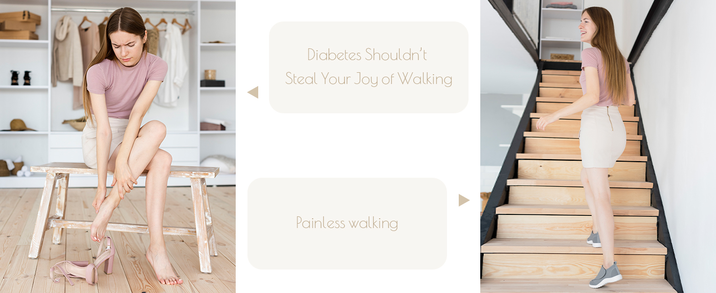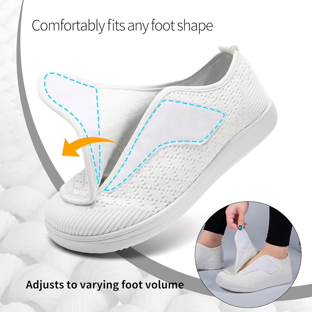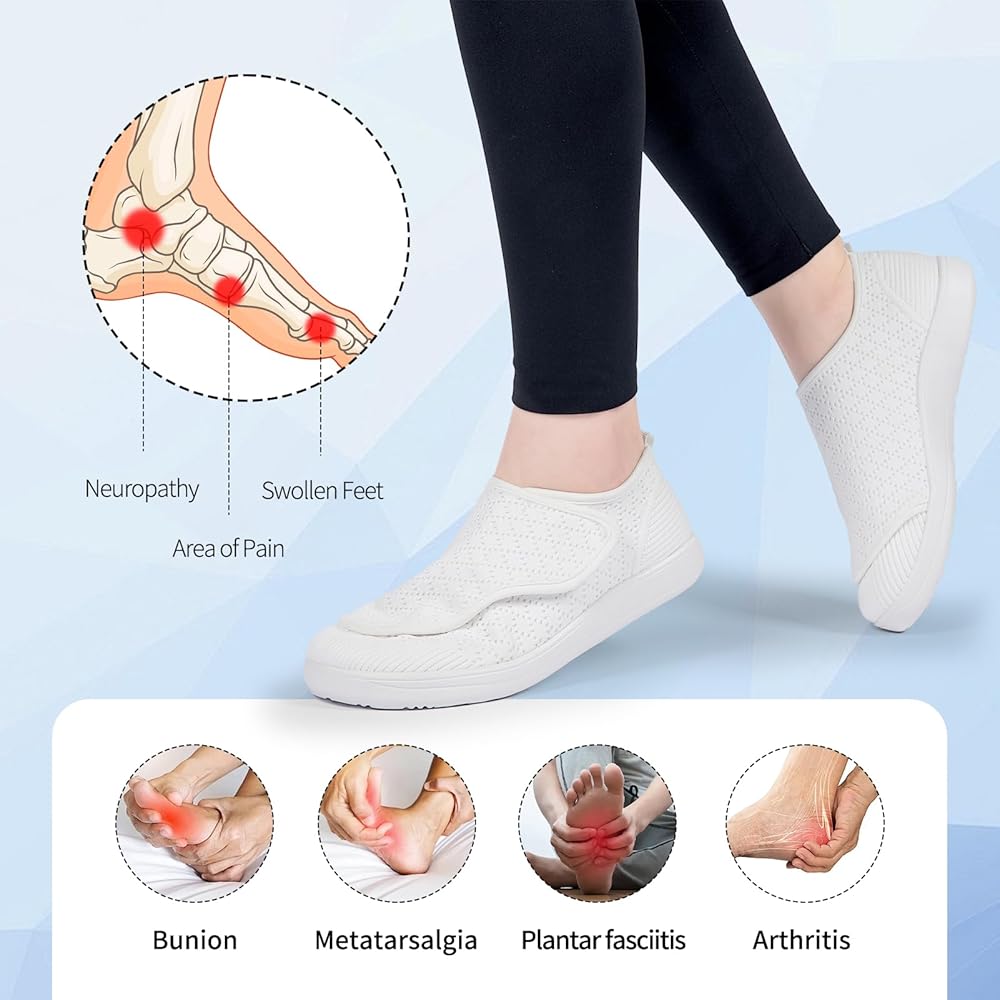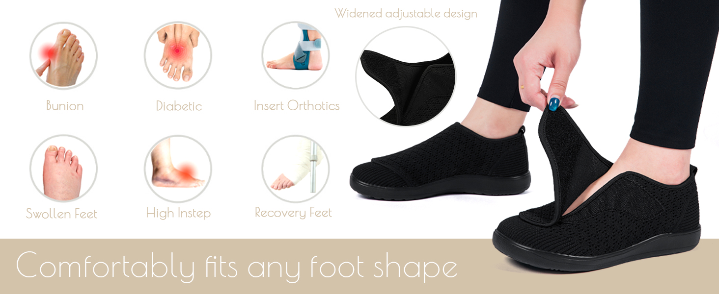 تصميم أحذية السكري القابلة للتعديل: يتيح إغلاق الخطاف والحلقة تعديلًا سهلاً/إيقافًا ومرنًا ، مما يجعله مناسبًا لمرض السكري ، والاعتلال العصبي ، والتهاب المفاصل ، وذمة ، والتهاب اللفافة الأخمصية ، وأشكال القدم المختلفة