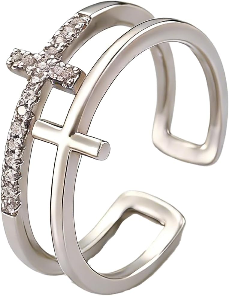 【Adjustable Open Cross Ring Design】The innovative adjustable cross design allows for a customized present based on your finger size, catering to most individuals. Whether worn solo or stacked with other rings, this versatile piece adds a touch of elegance to your look, guaranteeing a plethora of compliments and attention wherever you go