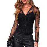 • ✔ 【الميزات : : Black/White Long Sleeve Lace Mesh Plouse في الدانتيل الأزهار ، اللون الصلب ، الرقبة الخامس ، Ruched. شاهد من خلال قمم للنساء مثالية للطبقات ، وخفيفة الوزن ، مريحة وأزياء. يكفي أن ترتدي للخروج ، والتاريخ ليلة خارج ، حفلة ، نادي.