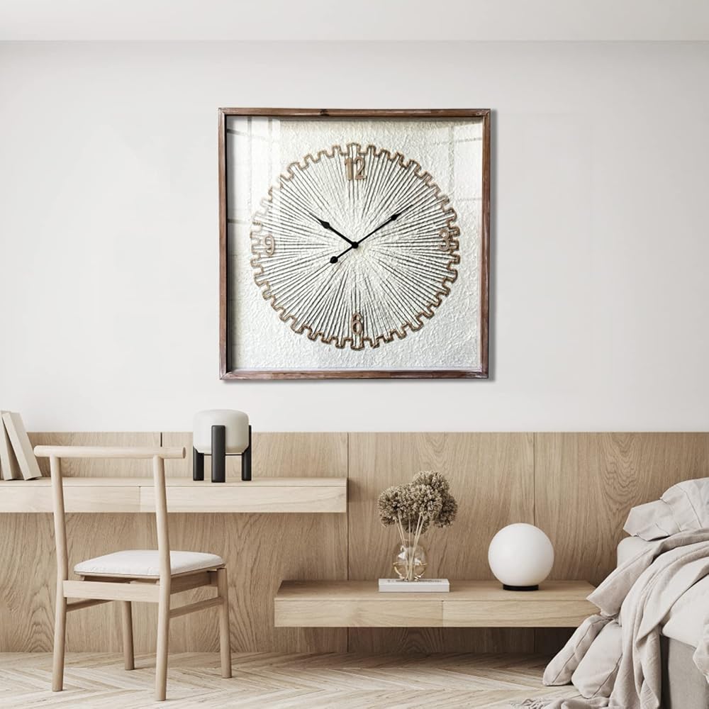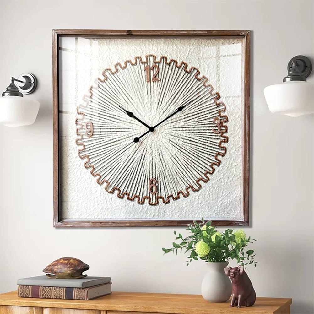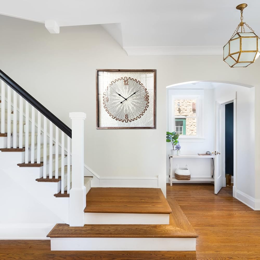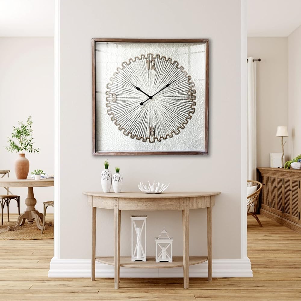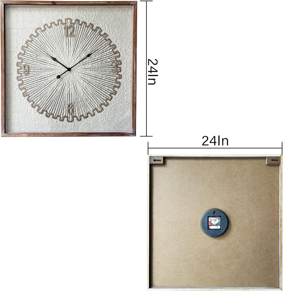 ساعة حائط مزرعة كبيرة من Keqam، ساعة ريفية بغطاء زجاجي، ساعات حائط مربعة صامتة غير موقوتة تعمل بالبطارية لغرفة المعيشة/المنزل/المطبخ/غرفة النوم/المكتب/ديكور المدرسة (24 بوصة)