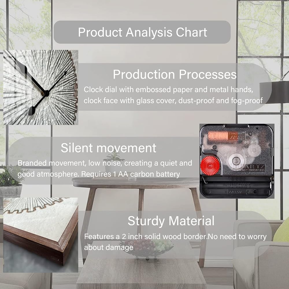 Structure Design and Concept - Cherish time and love life. This farmhouse clock not only has a glass-covered surface, but also the border is carefully selected from high-quality wood. The back is more made use of MDF and the clock dial is also made use of embossed paper material to flaunt a chic country charm.