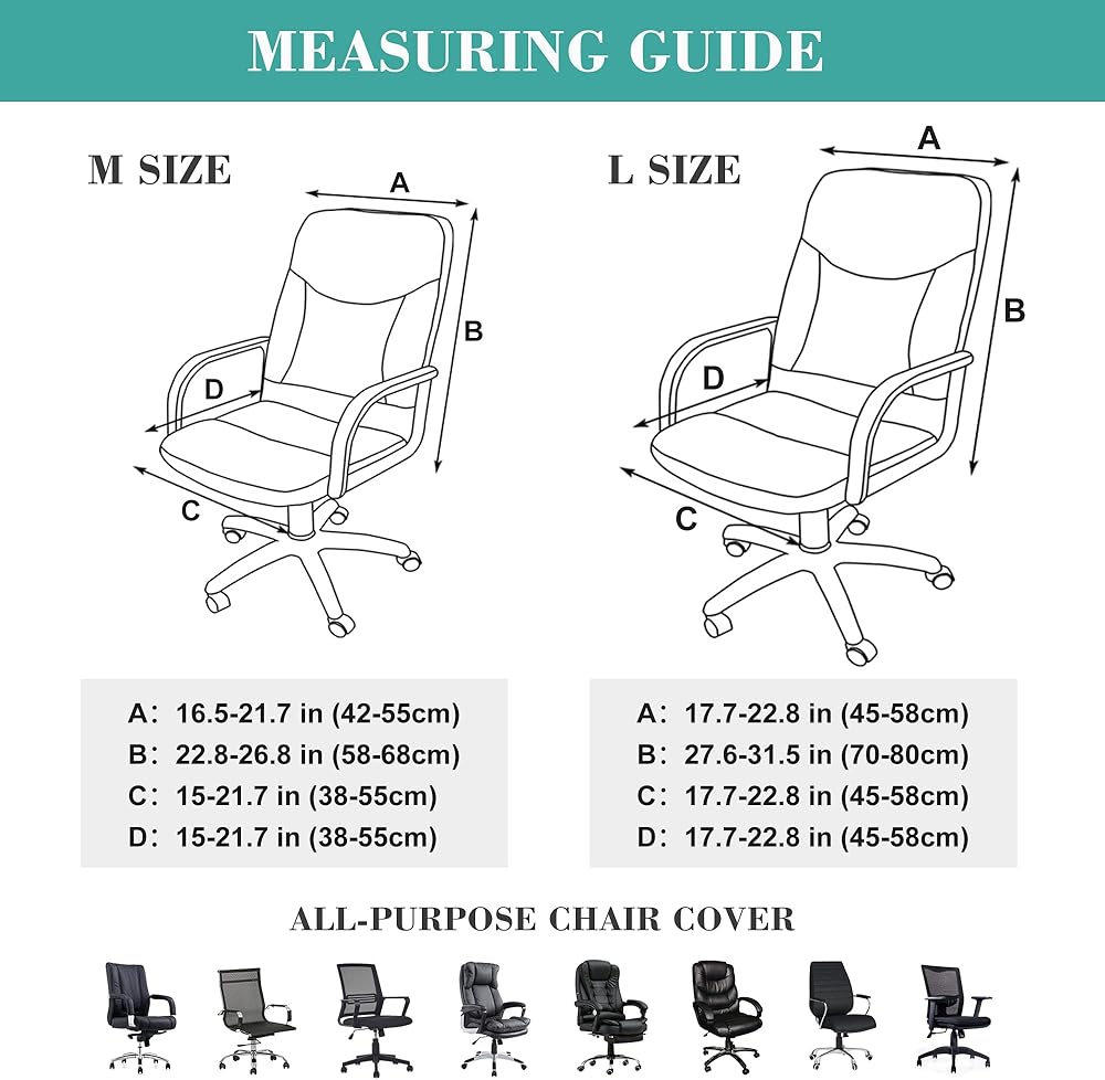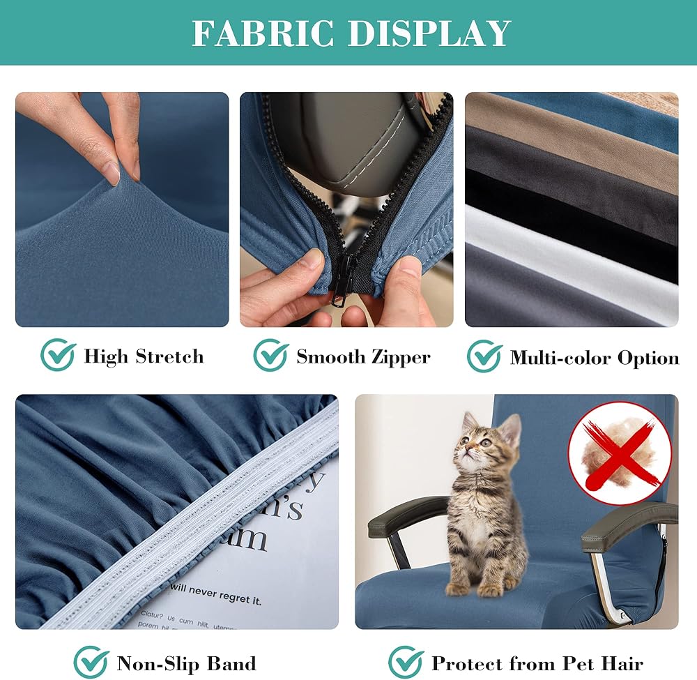 أشكال متعددة: أغطية كراسي المكتب باللون الأسود والرمادي الداكن والرمادي الفاتح والبيج والأزرق الرمادي جاهزة للاختيار من بينها. يتوفر مقاس L وM. إذا كان لديك أي أسئلة، فلا تتردد في الاتصال بنا.