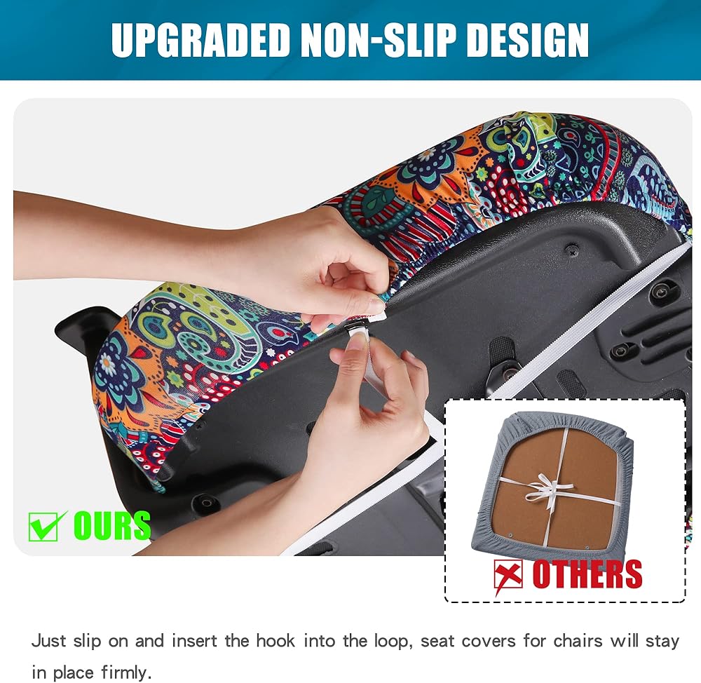★ نسيج ناعم ومطاط: أغطية كراسي المكتب المطبوعة مصنوعة من 92% بوليستر و8% ألياف لدنة، ناعمة وقابلة للتمدد، ومتينة وتدوم طويلاً. مرونة عالية تتعافى بسرعة وتسمح بملاءمتها بشكل مثالي لمعظم كراسي المكتب.