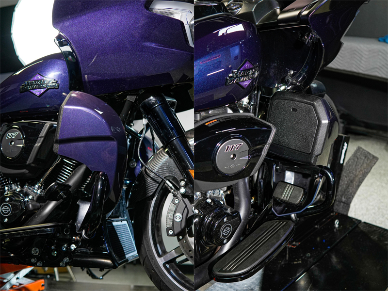 التثبيت: Perfect OEM Fit - البراغي مباشرة على قضبان تحطم OEM المفرومة. لا يوجد تجميع مطلوب ، فإن الملاءمة الخاصة بالسيارة تضمن التثبيت المناسب والتوافق مع دراجتك النارية H-D