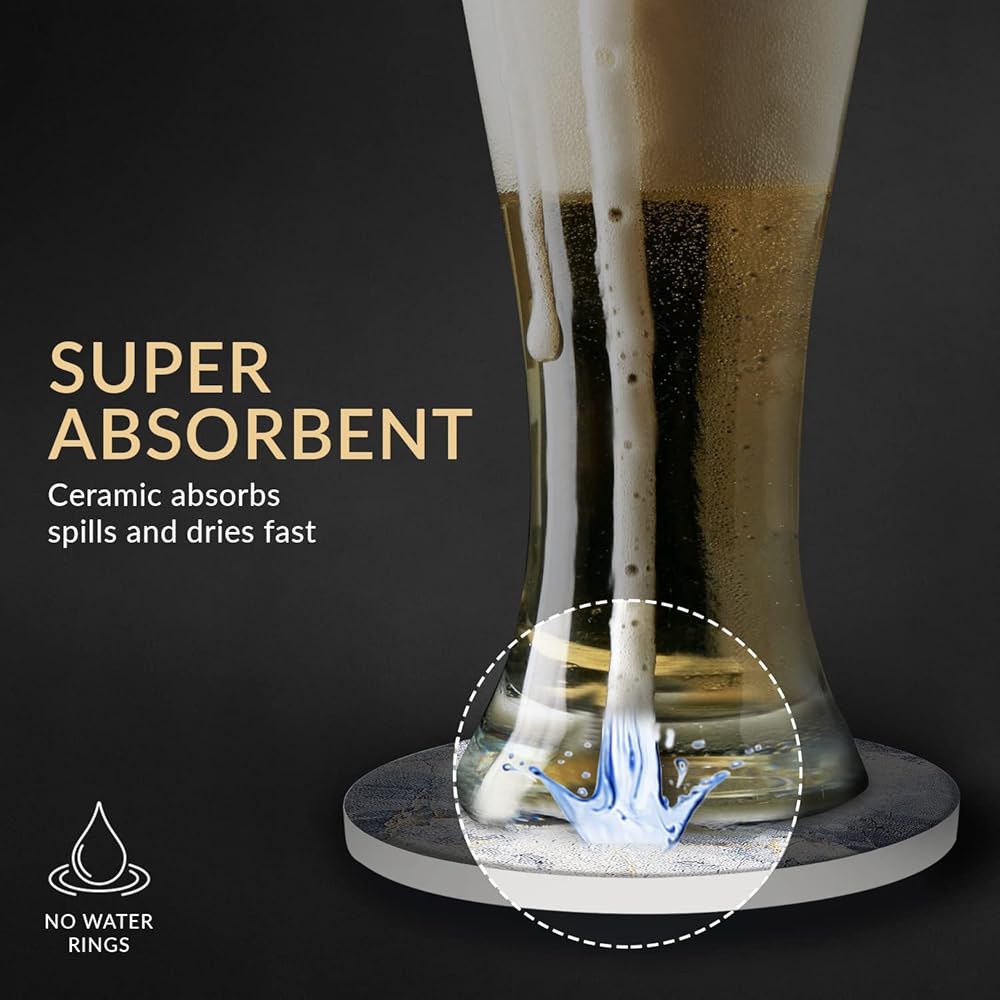 • امتصاص فائق للماء: في غضون ثوانٍ، يتم امتصاص أي سائل يوضع على قواعد الأكواب الخاصة بنا على الفور دون ترك قطرات أو بودل أو لزجة أو بقع. استكمل ديكور طاولتك بمجموعة قواعد الأكواب الخاصة بنا السميكة بما يكفي لامتصاص أي سائل أو ساخن أو بارد، ولكنها رقيقة بما يكفي لمزجها بشكل مثالي.