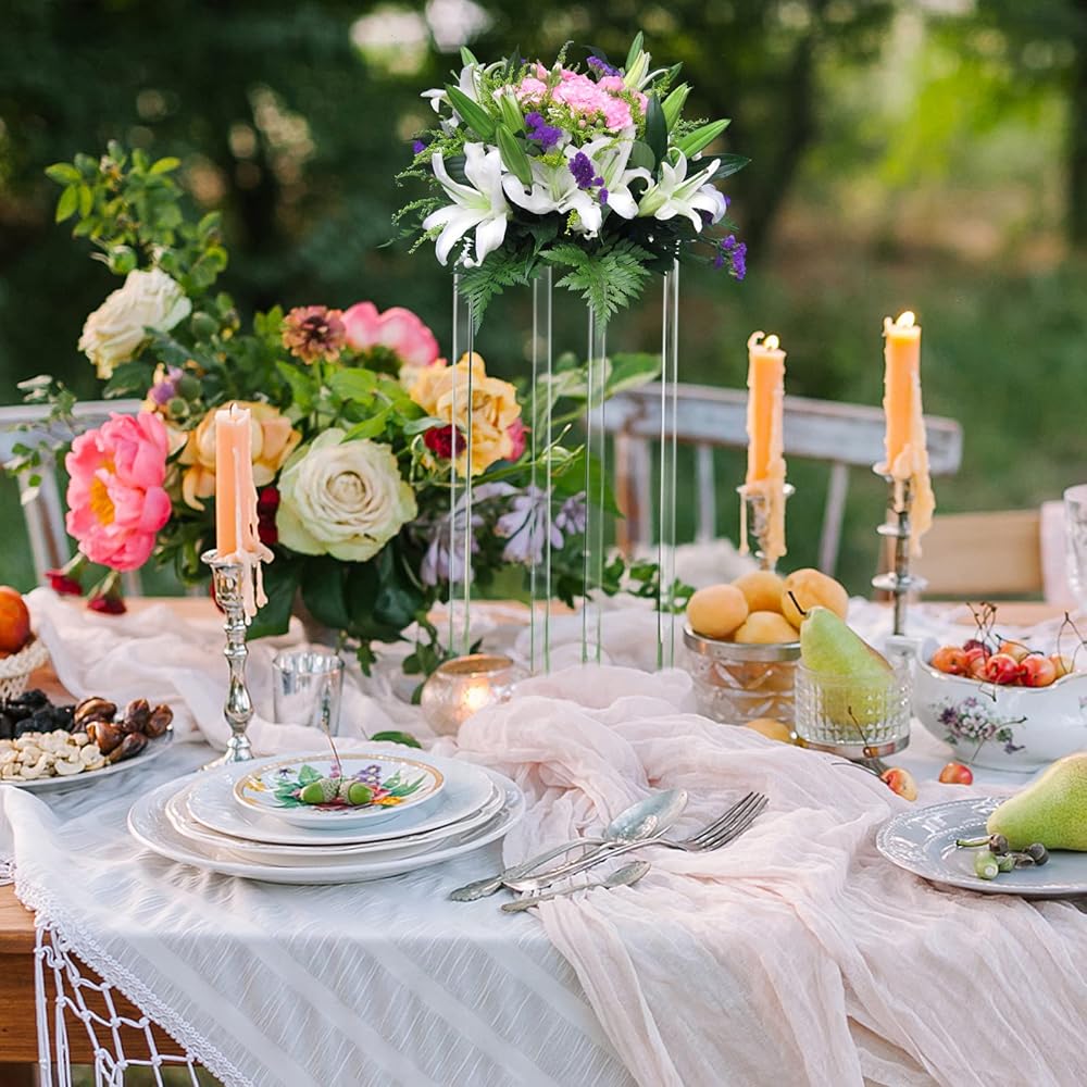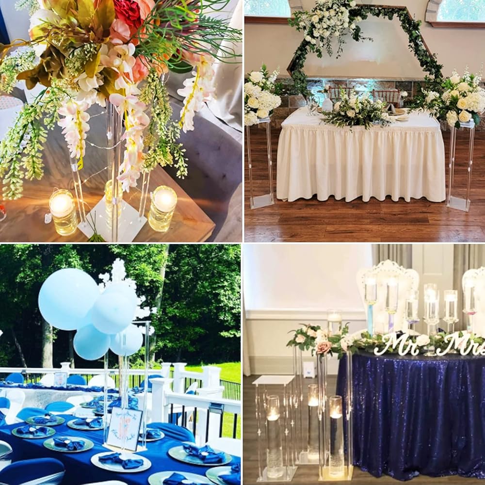 • عالي الجودة】حامل زهور الزفاف مصنوع من مادة الأكريليك الشفاف عالي الجودة، والتي تتميز بنفاذية ضوء ممتازة ولمعان مثل الكريستال الساطع.