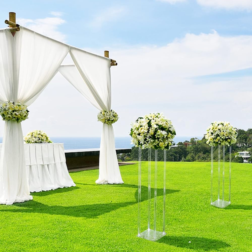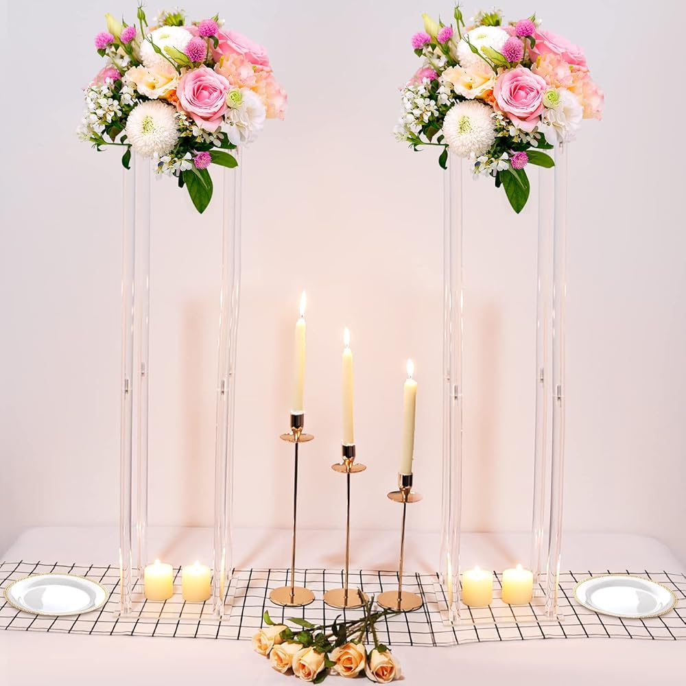 مزهريات أكريليك لحفلات الزفاف من سنتربيس، 2 عبوة من 31.5 بوصة حامل زهور طويل لحفلات الزفاف، أعياد الميلاد، الحفلات، طاولة ديكور المنزل حوامل هندسية في المنتصف