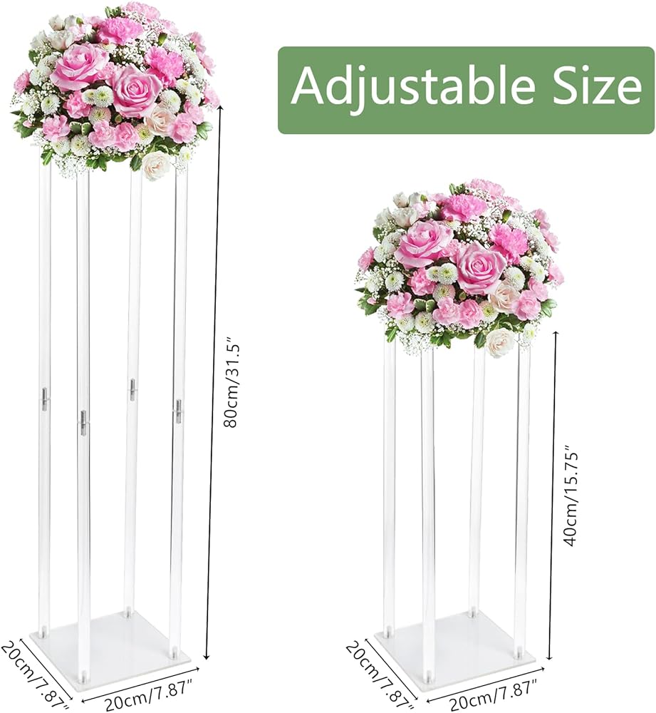 • ❄ ارتفاع قابل للتعديل】تصميم قابل للفصل يجعله أكثر تنوعًا، ويمكن تحويله بشكل عشوائي إلى ارتفاع 40 سم أو ارتفاع 80 سم حسب احتياجاتك، يمكنك وضع الباقات وأكليل الزهور وغيرها من الديكورات على حامل الزهور الأكريليك الهندسي لإضافة رومانسية وفخامة.