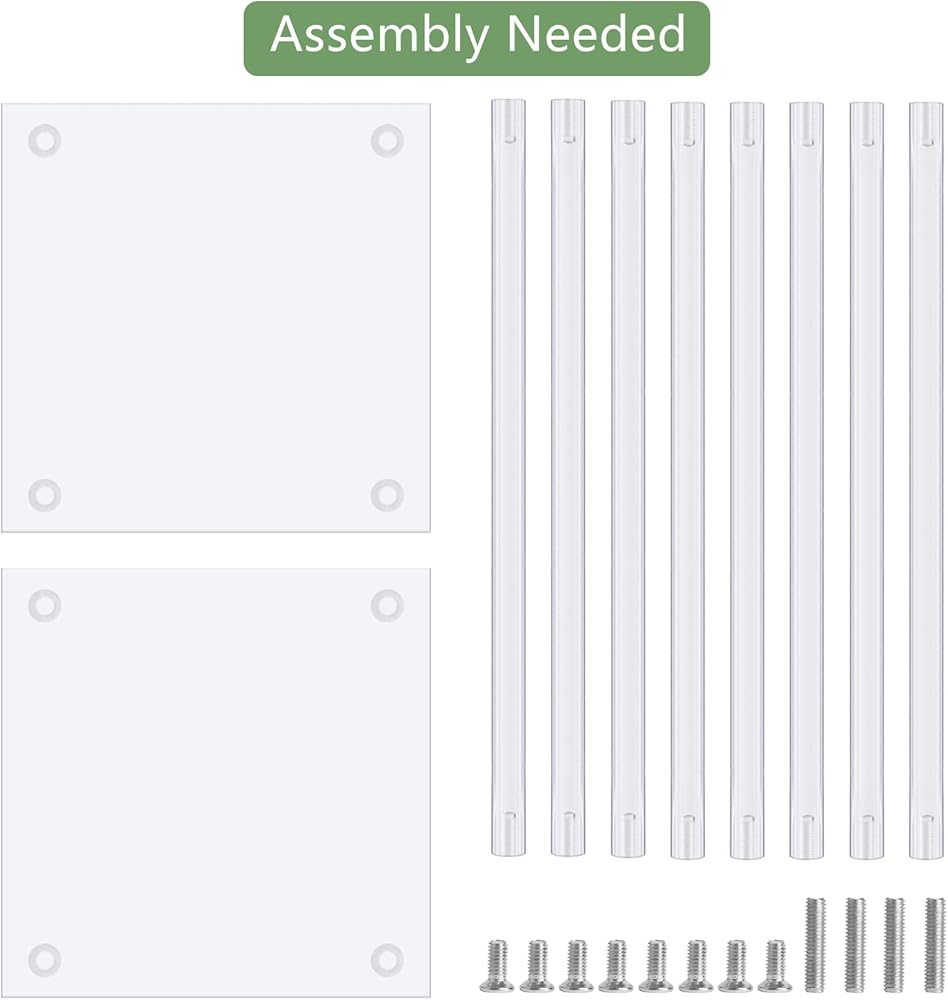 • سهل التركيب والفك؛ يتم تعبئة قضيب الأكريليك وورقة الأكريليك بشكل منفصل لسهولة النقل، وجميع الأجزاء في العبوة، تحتاج إلى تجميعها بنفسك. هناك فقط 4 مسامير في الأعلى والأسفل، تحتاج فقط إلى إدخال 8 شرائط أكريليك في قاعدتين مربعة من الأكريليك، سهلة الإغلاق. مفك البراغي (مضمن) يمكن أن يساعدك على التثبيت بشكل أفضل.