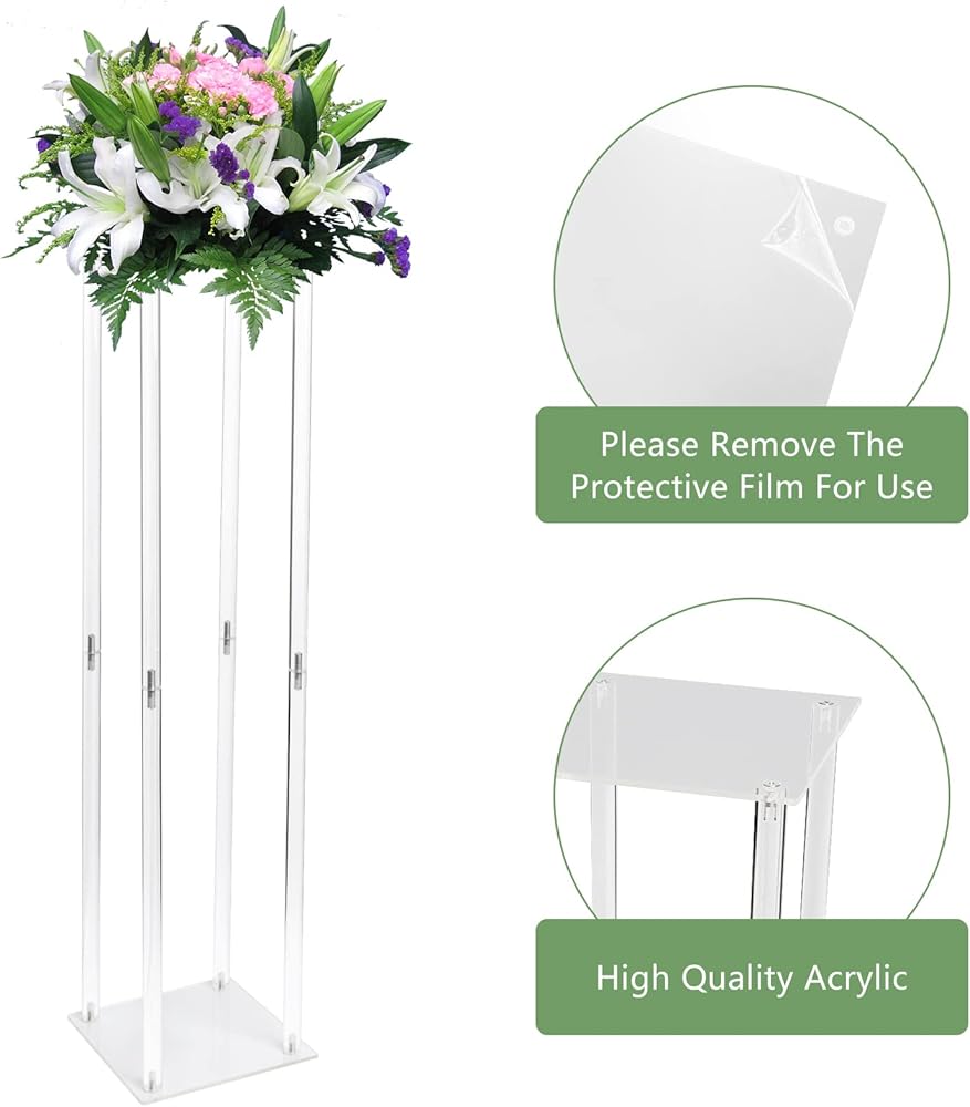 • ❄ أنيق ومستقر، يعتمد حامل زهرة الأكريليك بطول 81 سم على تصميم أسطواني صلب شفاف، وهو جميل ورائع. كما يمكن للتصميم العمودي تحسين استقرار مزهرية الأزهار العمودية الشفافة. حتى إذا وضعت الكثير من الديكورات على مزهرية الزهور العامودة، فلن تسقط.