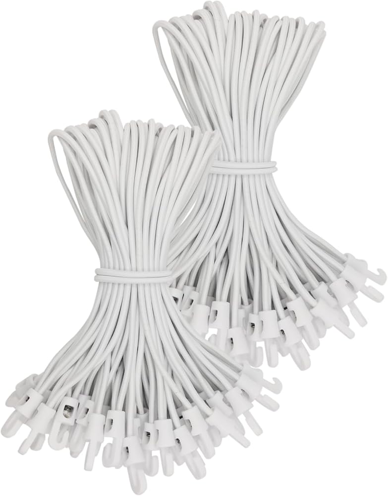 حبال Bungee مع مادة السنانير: مركبات القماش المشمع مصنوعة من الخدمة الشاقة من اللاتكس الجودة. السنانير البنجي مصنوعة من البلاستيك الجودة. هذا مرن ، مقاوم للطقس ، متين ومقاوم.