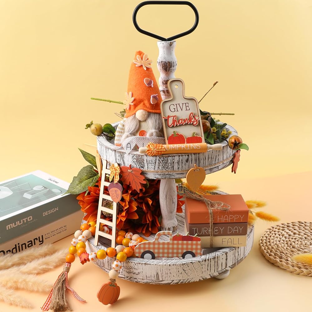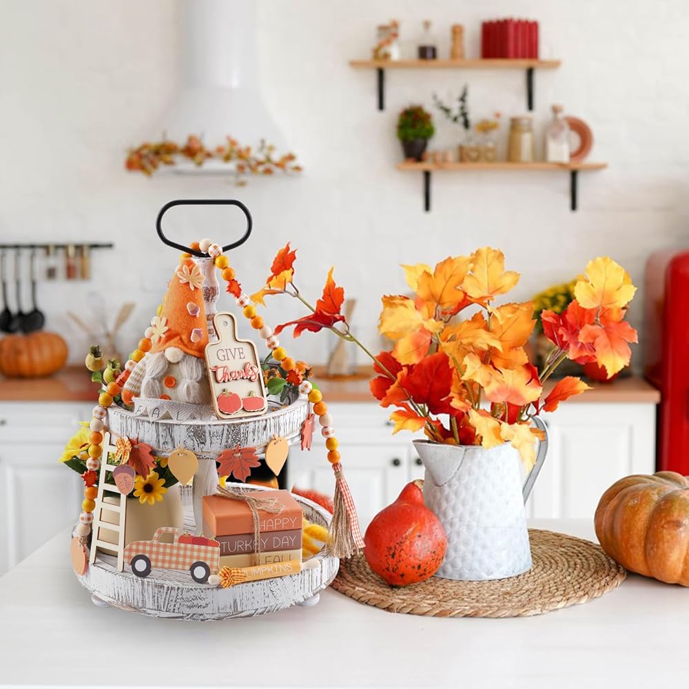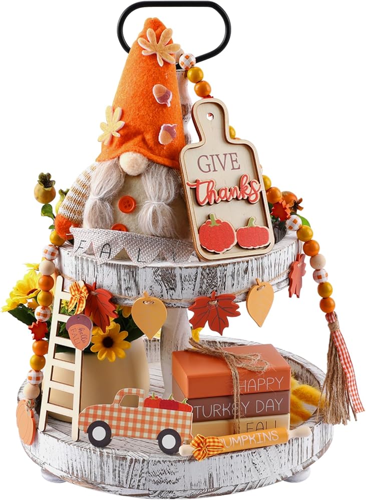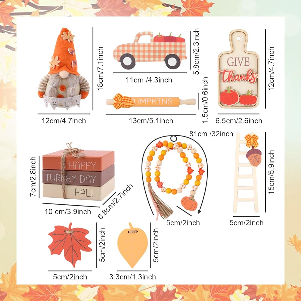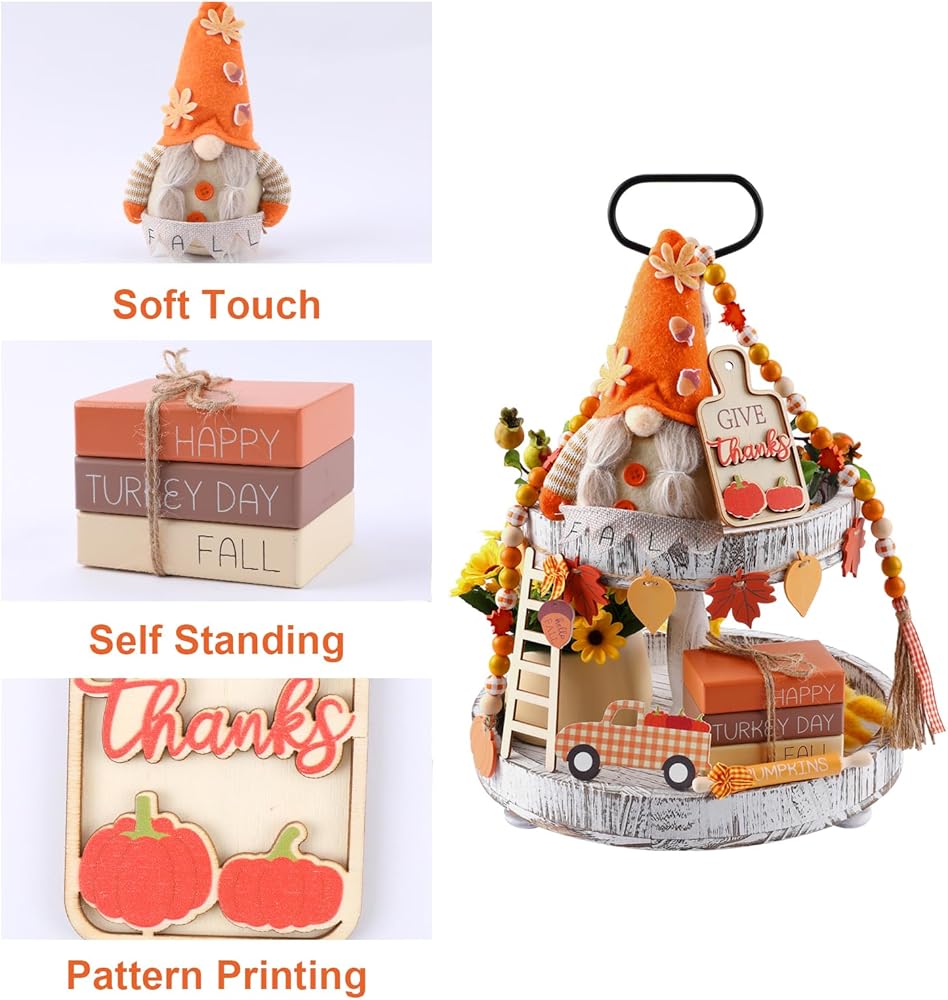 تصميم كلاسيكي بنمط الخريف وعيد الشكر: تتميز ديكورات صينية الخريف/عيد الشكر الخاصة بنا بالعديد من التصميمات والأشكال الكلاسيكية والمرحة، مثل اليقطين وأوراق القيقب والشاحنات والتماثيل والكتب الخشبية المطبوعة بخريف سعيد/عيد الشكر، وما إلى ذلك، تأتي مع صندوق ملون جميل بنفس النمط، الألوان النابضة بالحياة والمظهر الأنيق سيعزز جو الخريف. هيكل خشبي فاخر: هذه الزينة الخشبية ذات الطبقات مصنوعة من الخشب الفاخر والمتين؛ لا داعي للقلق بشأن كسر الديكورات أو تدهورها بمرور الوقت لإضفاء الحيوية على غرفتك أو طاولتك. مجموعة صواني متعددة الطبقات للخريف / عيد الشكر: سوف تحصل على مجموعة من ديكورات صينية العطلات، والتي تشمل دمى جنوم الخريف، وخرز خشب اليقطين من القيقب، وشاحنات اليقطين، ودبابيس دوارة، وأسطح الطاولة، وسلالم التسلق، والكتب الخشبية، وعروات سحب أوراق القيقب. الكثير من الكميات والأنماط لتلبية احتياجات الديكور الخاصة بك وإضافة إلى الأجواء الاحتفالية لعيد الشكر. ديكورات المطبخ الريفية/عيد الشكر: يمكن وضع صواني المطبخ ذات الطبقات المزخرفة في الخريف وعيد الشكر في المنزل على طاولات الطعام والصواني ذات الطبقات والأرفف والمدافئ والخزائن والمطابخ والطاولات ونوافذ المزرعة وحانات القهوة والطاولات وعتبات النوافذ وما إلى ذلك، لتعزيز الشعور المريح في الخريف وعيد الشكر. اختيار هدية لا ينسى: مجموعة ديكورات صينية الخريف / عيد الشكر هذه معبأة في صندوق ملون جميل، رائعة كهدية في الخريف أو عيد الشكر أو العطلات أو الانتقال إلى منزل جديد لعائلتك وأصدقائك، سيكونون سعداء بتلقي هديتك.