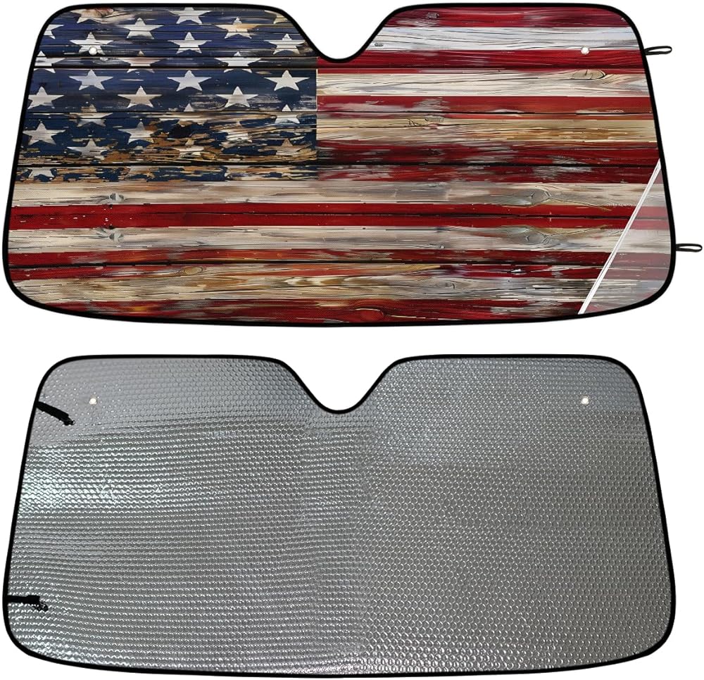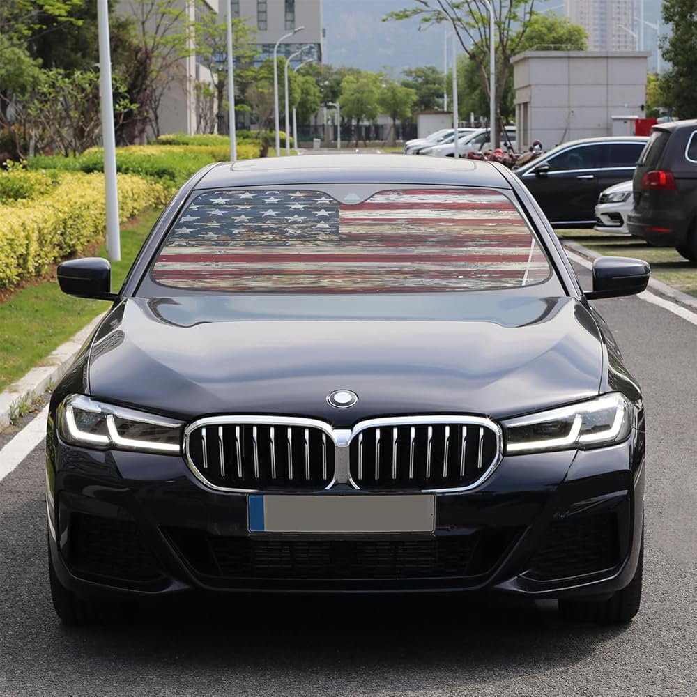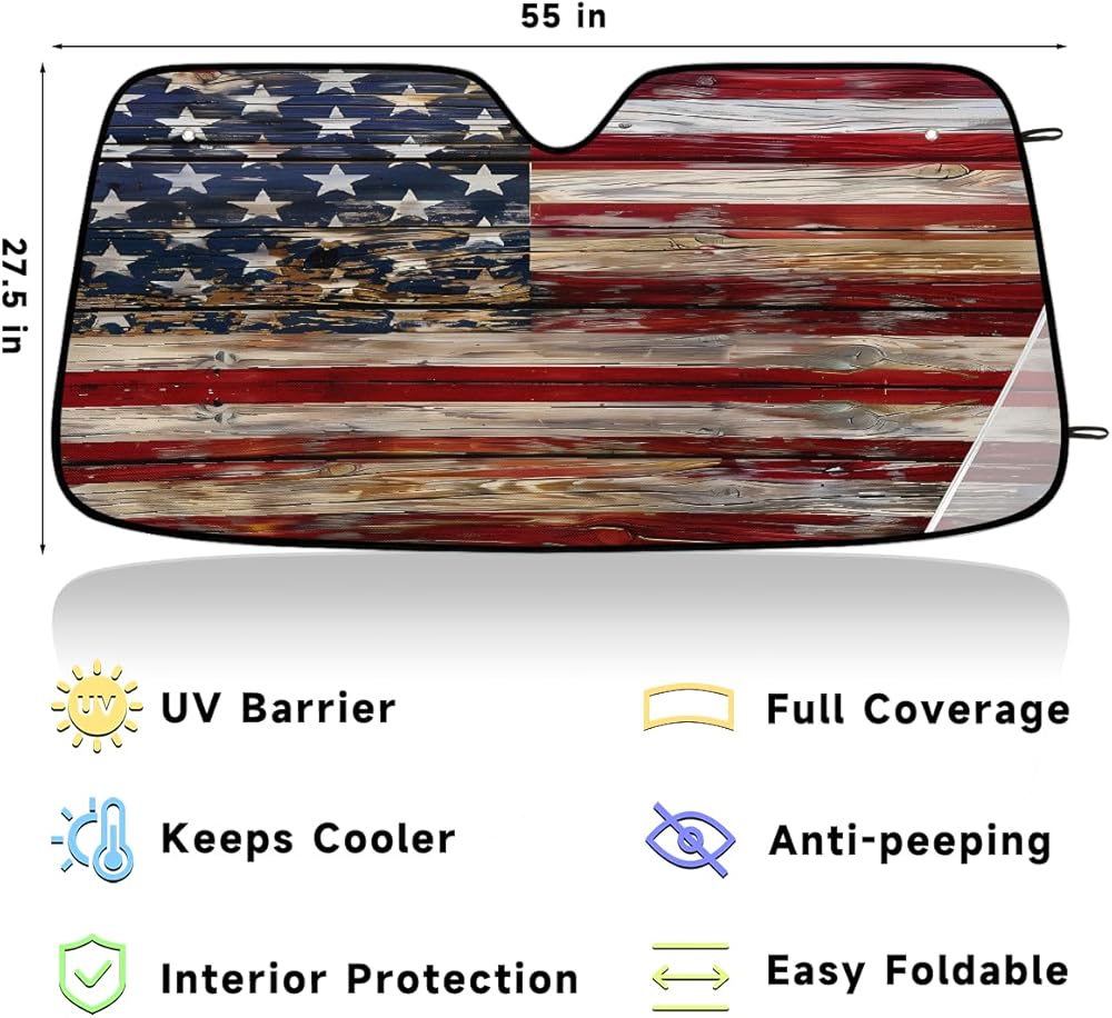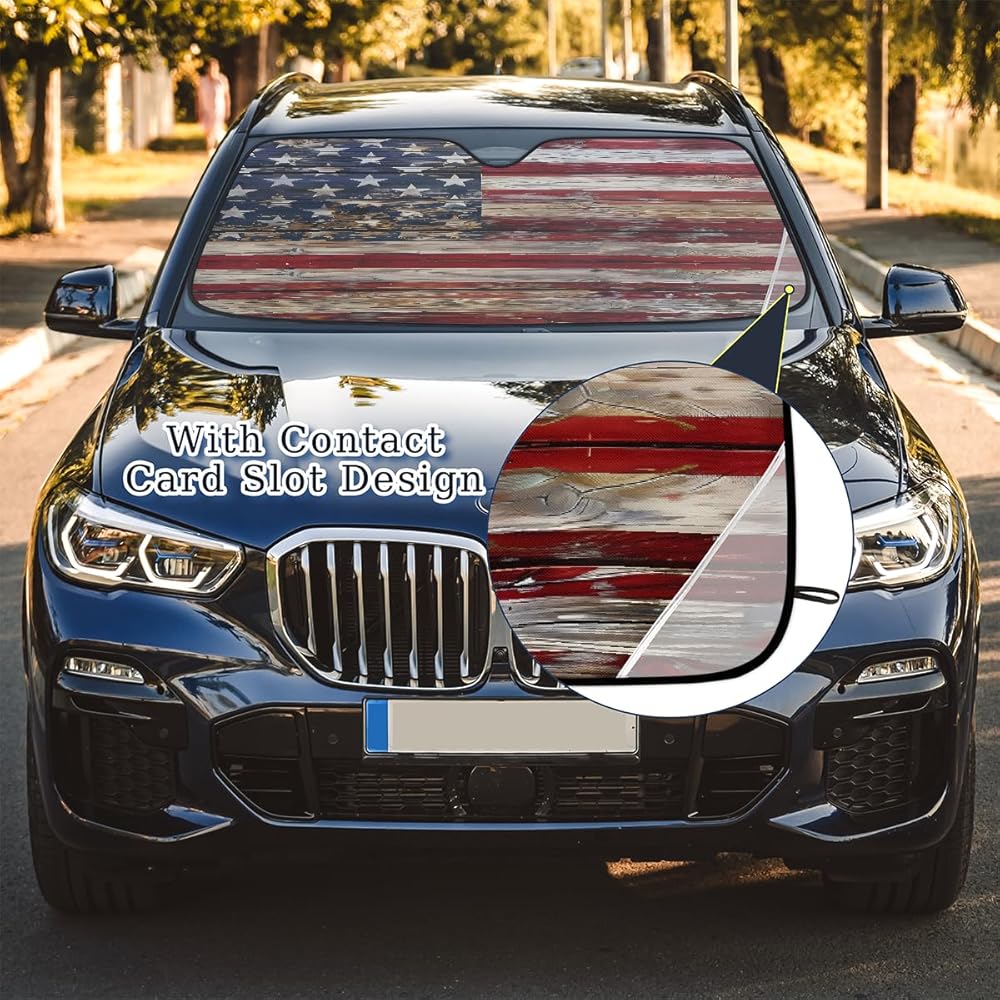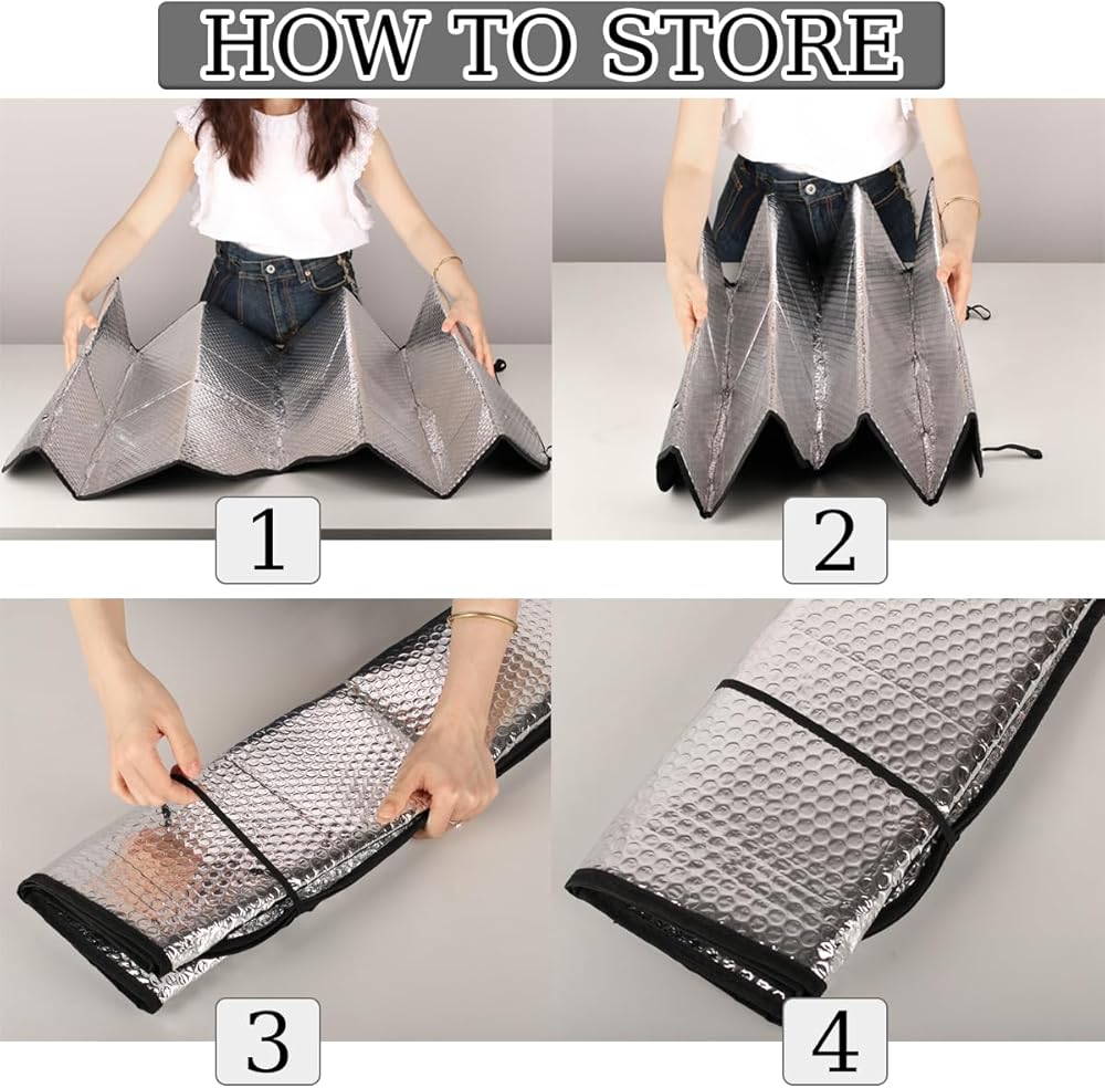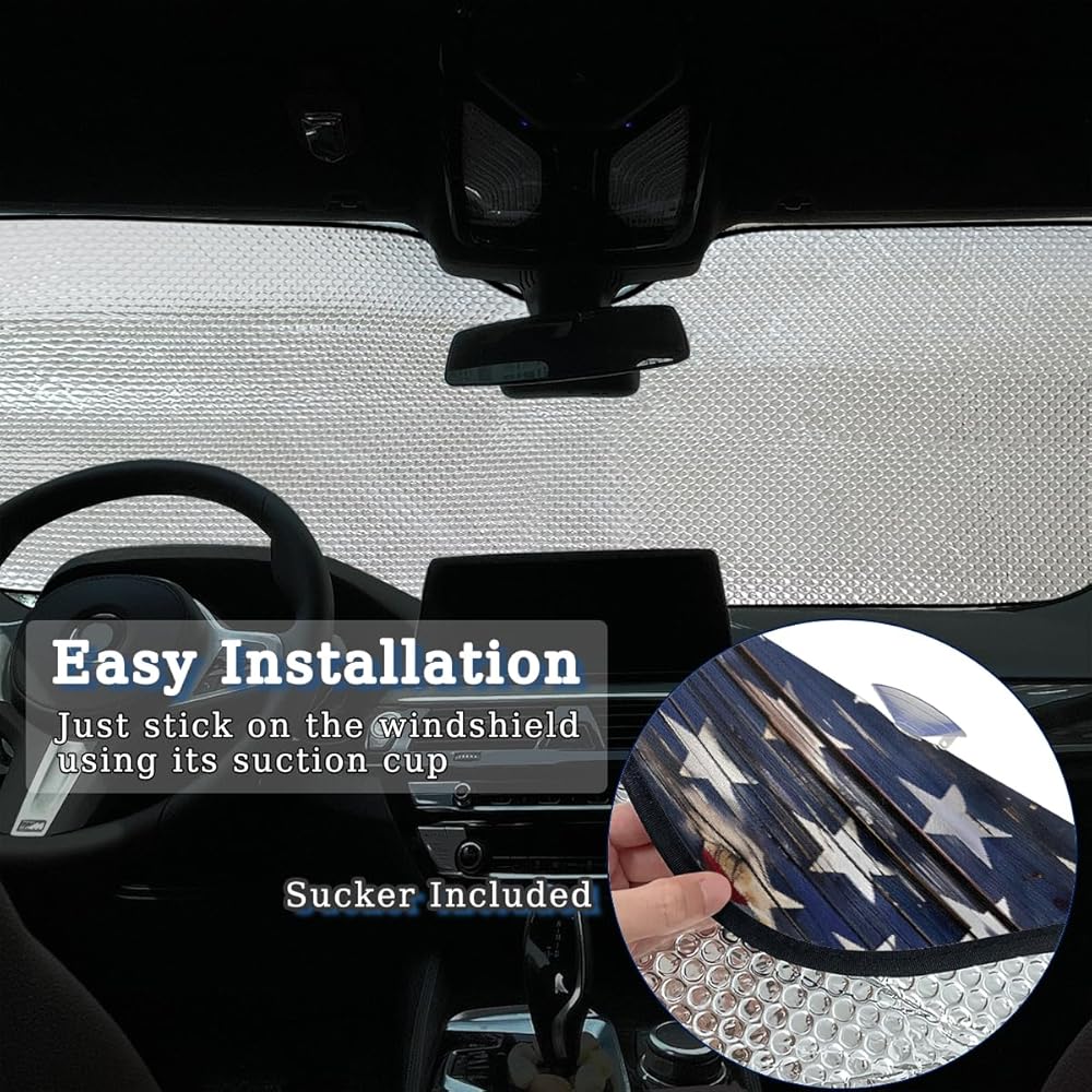 Keep Car Interior Cool: Front window windshield sun shade is made of high quality polyester fabric and premium aluminum foil material, which effectively blocks UV Rays out, reduce heat, protect your car and keep car interior cool