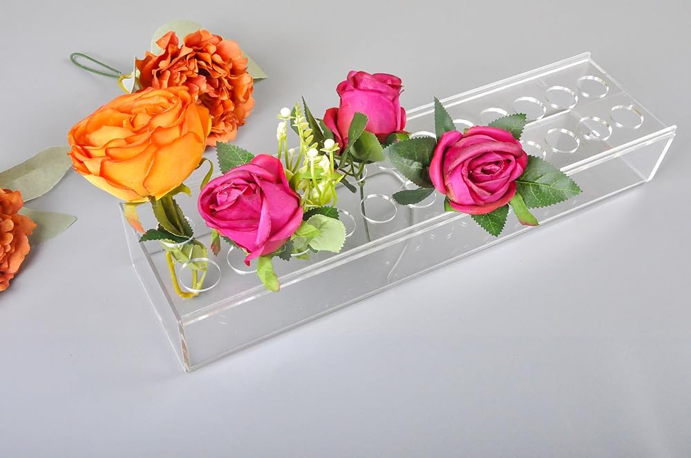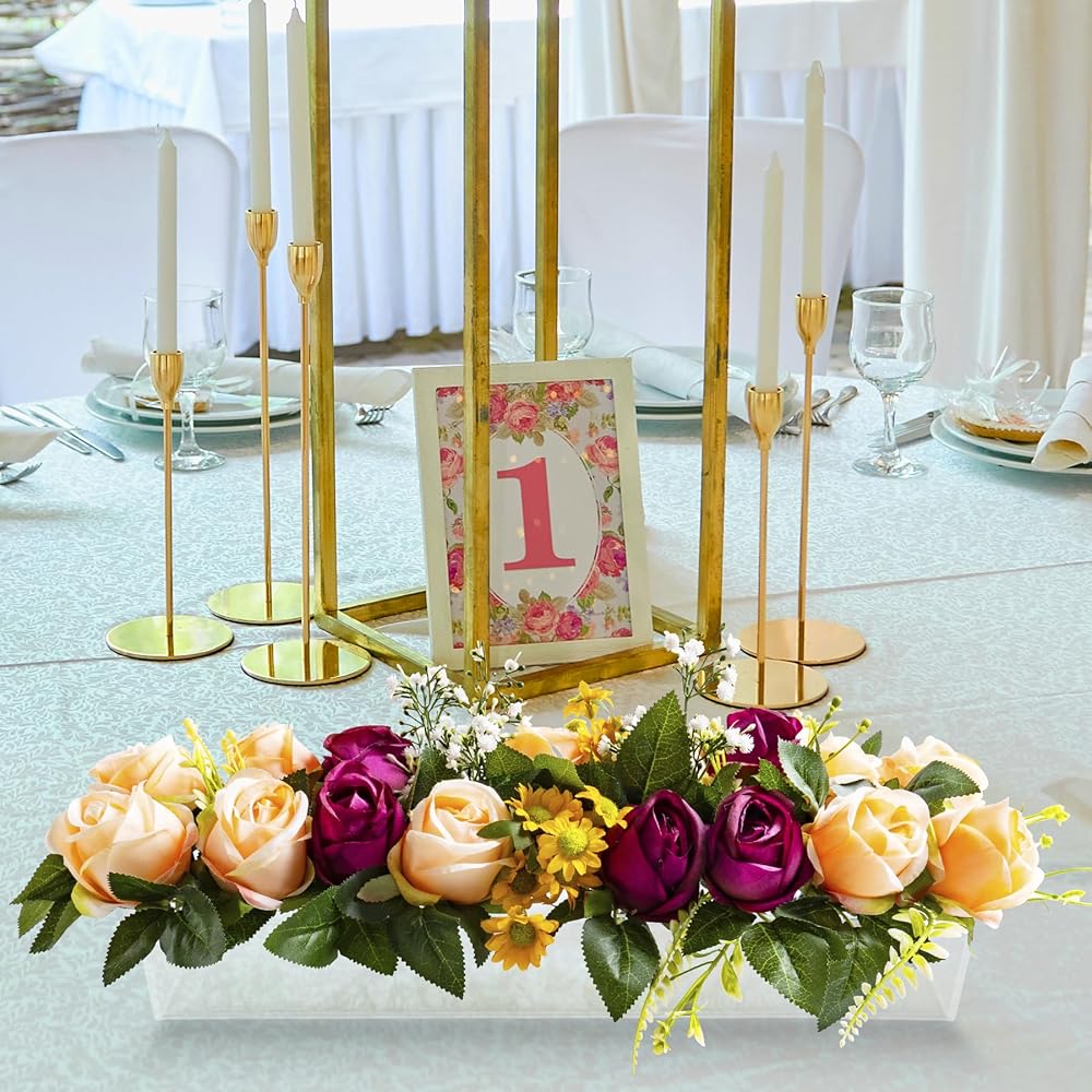 الحجم: كبير 24 بوصة، عرض 4 بوصة، طويل 2.6 بوصة، مستطيل، مثالي لطاولاتنا مقاس 12-15 بوصة، الزهور غير متضمنة