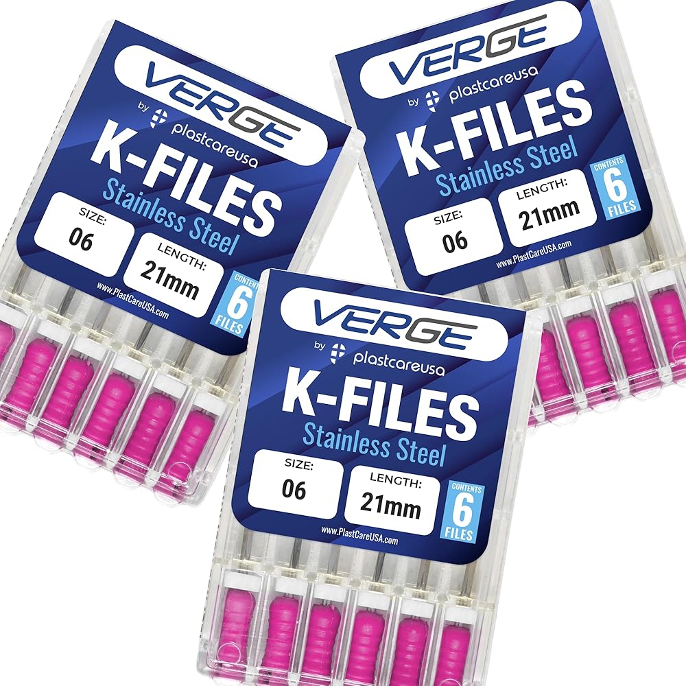 مجموعة واسعة من الخيارات - تتوفر ملفات K من رقم 6 إلى رقم 80 مع كل رقم بلون مختلف لسهولة التعرف. لدينا أيضًا عبوات متنوعة من هذه اللوازم الأسنان: #15- #40 و #45- #80.