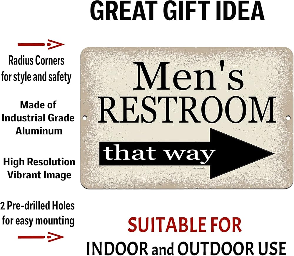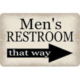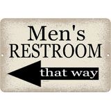 Transform your space with this stylish and functional **Men's Restroom Metal Sign**. Featuring a classic design with a left-pointing arrow, this 8x12-inch aluminum sign ensures easy navigation for guests while adding a decorative touch to any setting.